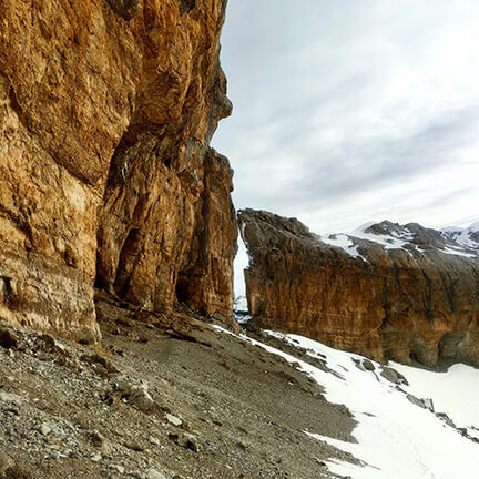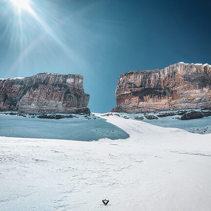 Soit en partant sur la droite, en longeant la paroi pour passer au Doigt de la Fausse Brèche et ensuite remonter jusqu'au sommet du pic du Taillon qui est un des sommets les plus faciles qui dépassent les 3000 mètres dans le cirque de Gavarnie.