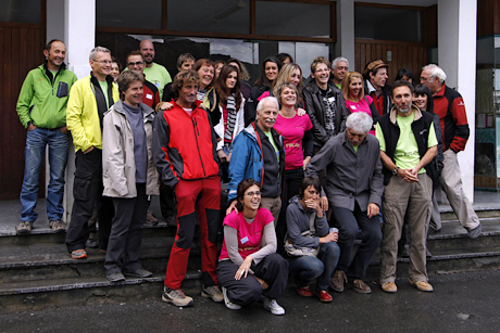 Après cette visite, retour dans les locaux de La Balaguère avant de se rendre dans la salle des fêtes pour un discours du fondateur de l'agence et de quelques invités dont une personne de Allibert-Trekking, un des concurrents de La Balaguère qui a son siège dans les Alpes. Beaucoup de clients s'étaient déplacés à l'occasion de cet anniversaire et l'ambiance était vraiment sympa. A l'issue des quelques interventions qui présentaient la société et l'esprit de La Balaguère, un apéro était proposé à tout le monde. Dans l'après midi, une randonnée au dessus du col du Soulor était organisée mais je n'ai pas pu y aller car il fallait que je rentre (le temps était de toute manière vraiment très gris, donc je reviendrai un jour où il fera meilleur). Dans un apéro orienté trekking et randonnée, j'ai même discuté d'aikido et ju-jitsu... C'était sympa. Une très bonne ambiance. Il faudra que j'essaye de faire un trek avec ces gens l'année prochaine.