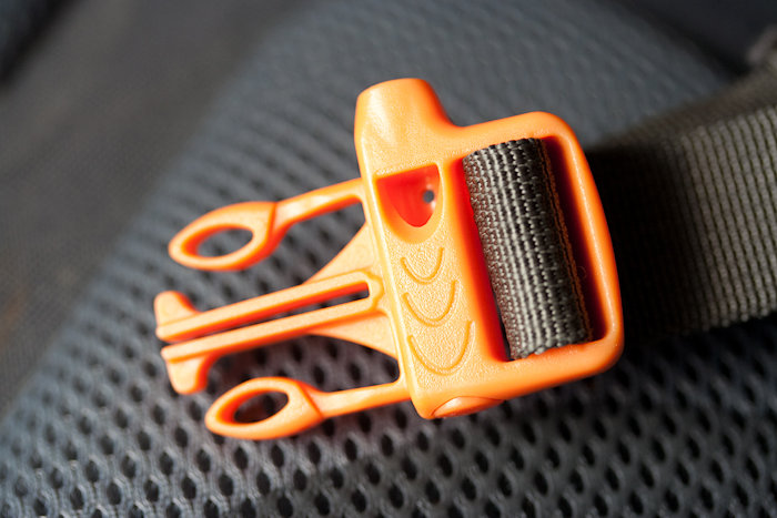 Les matériaux sont bien solides et n'ont pas bougés avec le temps. Les réglages sont précis et le dos bien aéré. Les petits plus comme le sifflet sur le serrage de poitrine sont agréables.
