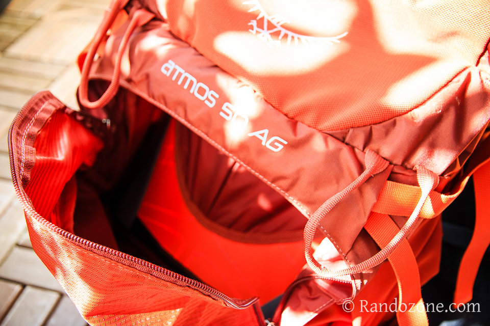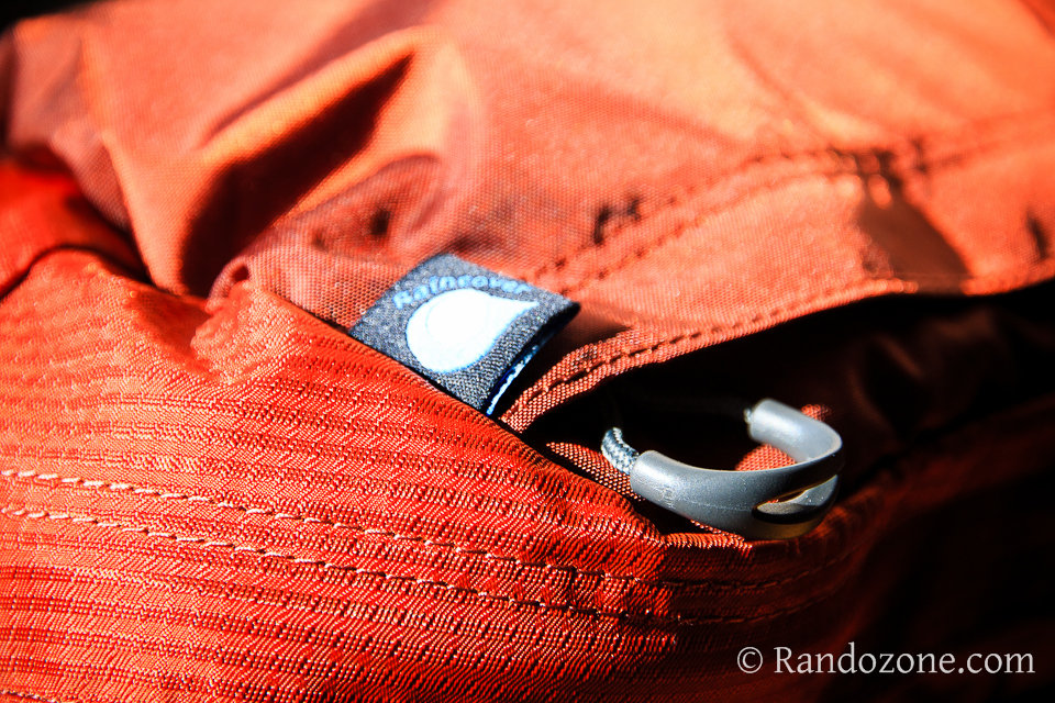 Sur le haut du sac on trouve une sorte de jupe qui permet de protéger le sac si on veut enlever la poche du haut. Je ne suis pas certain que ce soit très utile d'autant plus qu'enlever la poche n'est pas facile. On rajoute clairement du poids pour pas grand chose. Mais ça pourra toujours protéger un peu.