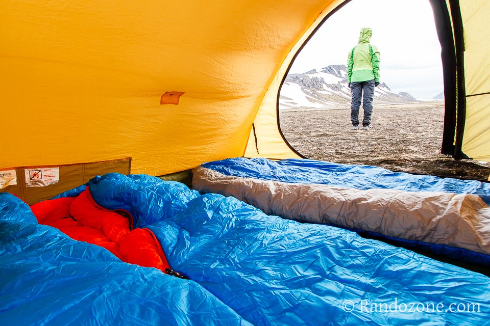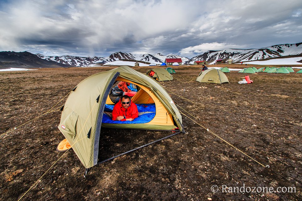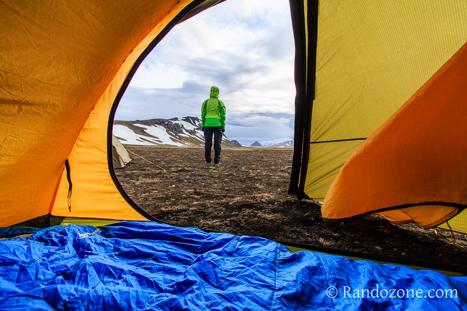 Le problème que j'ai avec les sacs de couchage c'est qu'en général on est complètement enfermés dedans et il n'y a pas beaucoup de place pour les jambes ou les bras. Certains aiment être serrés dans leur sac, moi je déteste ça. En général, je laisse même le sac ouvert pour pouvoir sortir une jambe ou les bras. Mais en Islande avec les températures proches de 0 (voire moins), ce n'était pas possible. Et j'ai donc été obligé de fermer complètement le sac de couchage pour me protéger du froid.