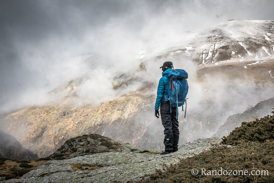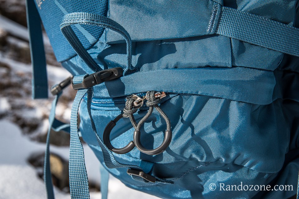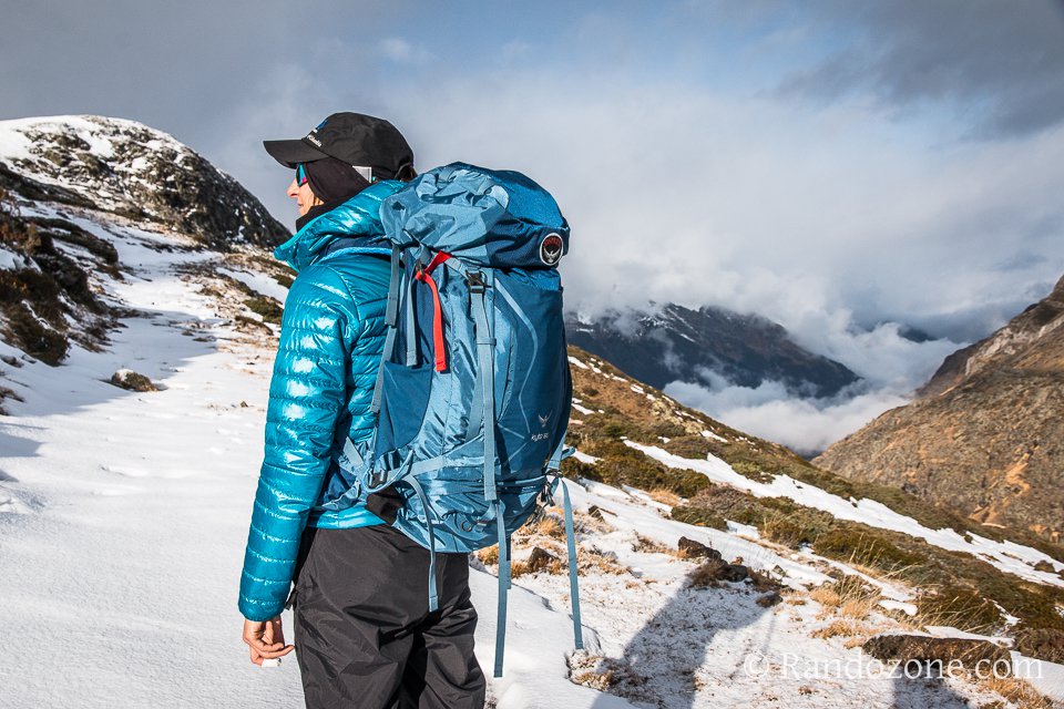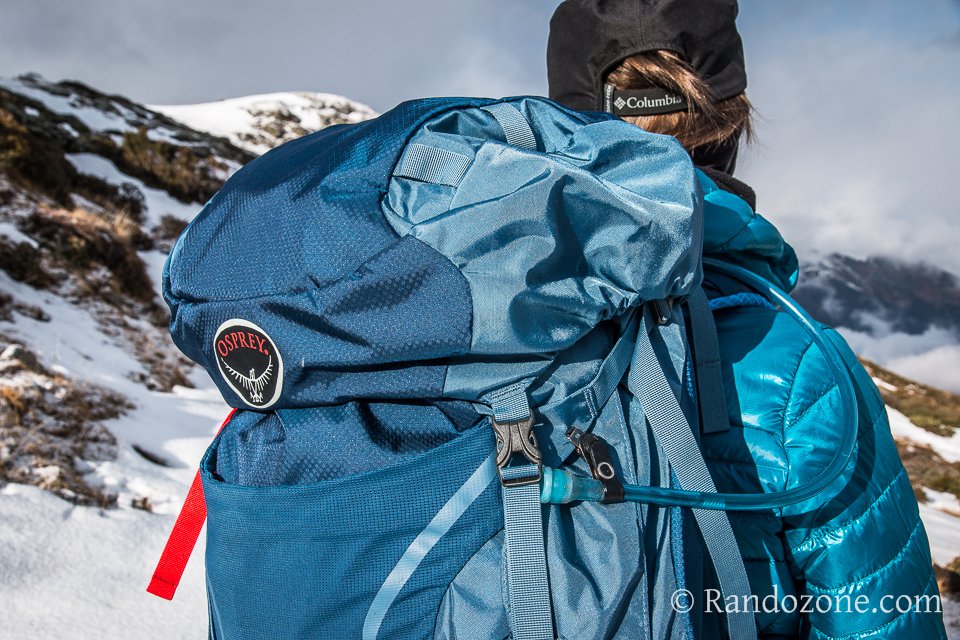 Lorsqu’on le regarde on se rend compte qu’on peut l’utiliser comme sac à la journée car il a un volume parfait pour cela. Mais si on souhaite, on peut aussi défaire les côtés et le sac grossit alors spectaculairement en volume. À ce moment là, il devient idéal pour les randonnées sur plusieurs jours. Autre point non négligeable : ce sac est très confortable à porter. Il se règle très facilement et au niveau des hanches on est bien maintenus.