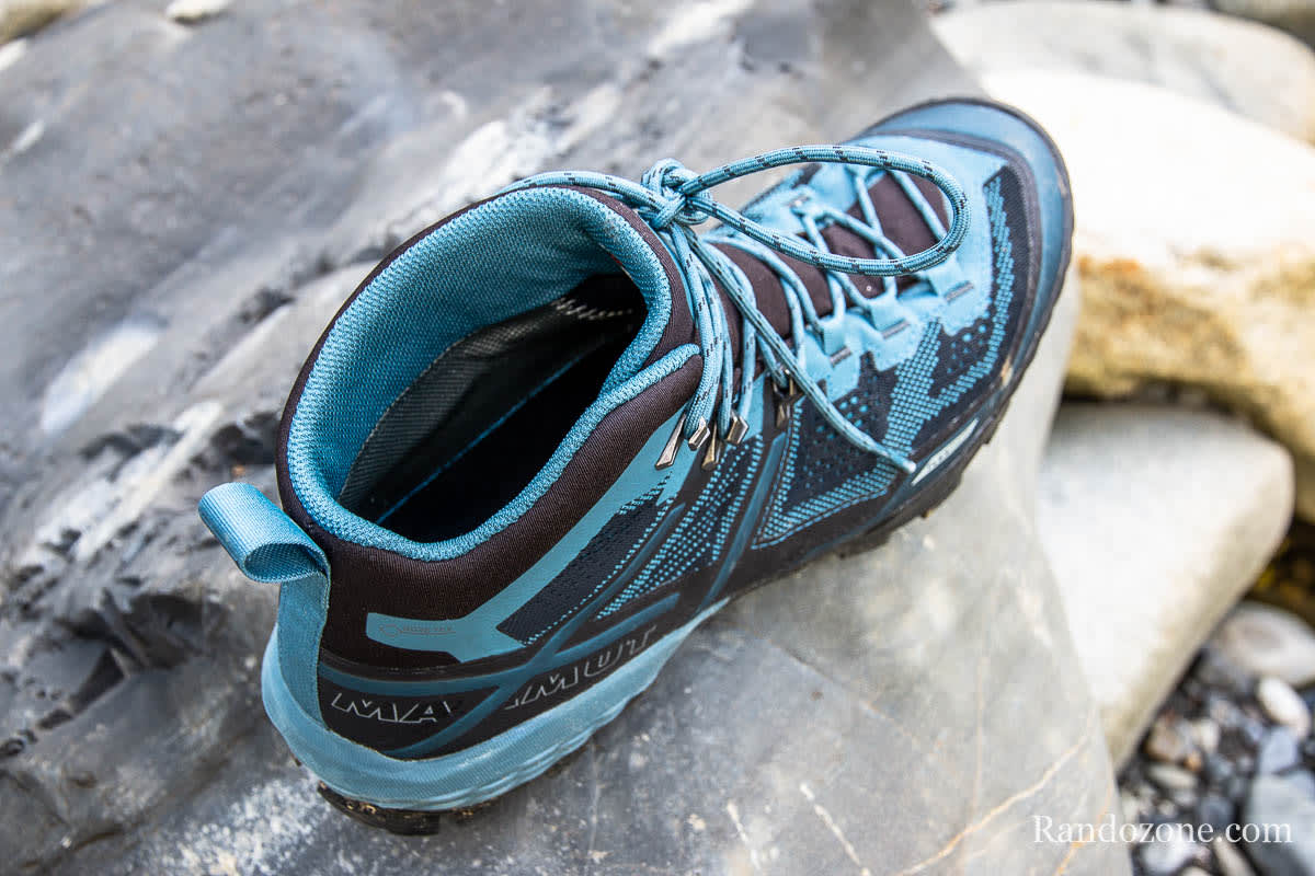 Mammut a choisi de faire un chaussant original avec une languette qui n'est détachée que d'un coté. L'autre côté faisant partie de la chaussure. Voir les photos pour comprendre de quoi je parle.