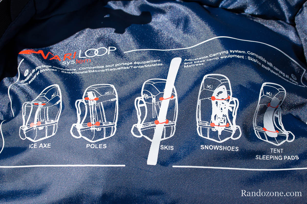 Son nouveau design minimaliste dissimule de nombreux rangements comme un compartiment à la base pour stocker séparément certaines affaires. On y trouve aussi plusieurs poches extérieures et un système de sangles VARILOOP™ qui permet de fixer des bâtons de randonnée, des skis de randonnée ou des raquettes à neige.