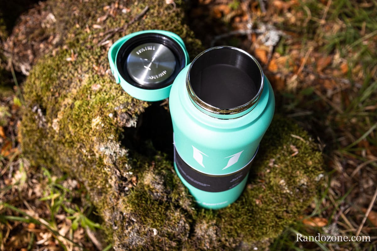 Evidemment, c'est une gourde assez lourde à cause de la conception en double paroie. Elle est aussi assez imposante car nous avons choisi de tester le modèle en 750ml. Mais pour une randonnée c'est une bonne taille et j'ai pu la ranger dans la poche latérale de mon sac à dos.