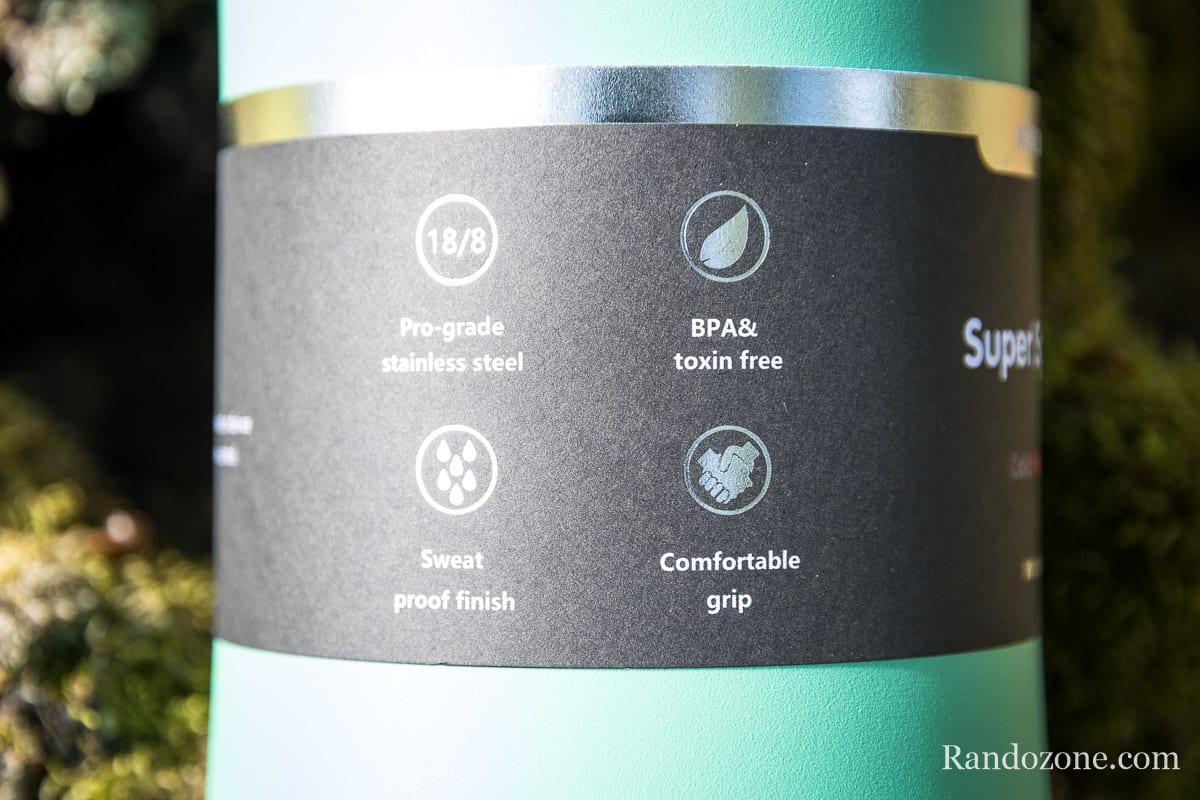 La gourde Super Sparrow Large Mouth est une bouteille en acier inoxidable 18/8 conçue sans éléments nocifs (donc sans BPA). L'acier inoxidable est de qualité alimentaire ce qui est primordial pour ce type de produit qui doit recevoir des liquides que l'on boit.