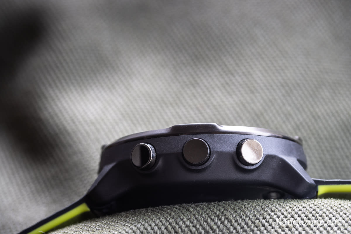 La montre Suunto 7 est équipée de 4 boutons : 1 sur le côté gauche et 3 sur le côté droit. Celui de gauche permet d'affiche la liste des applications de la montre ou revenir à l'écran d'accueil.