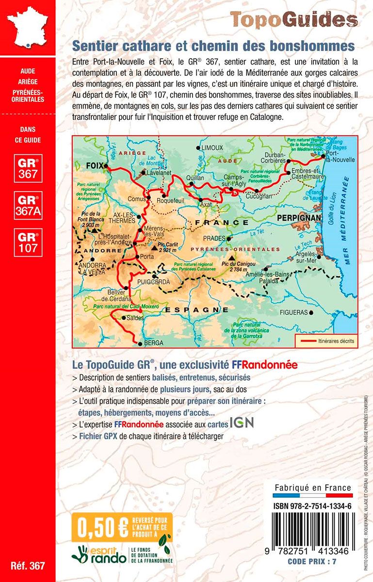 Ce topo-guide constitue la réunion de 2 sentiers emblématiques et historiques, le GR 367 qui chemine entre Foix et Port-la-Nouvelle et le GR 107 qui lui va de Foix à Berga en Epsagne. Il est ainsi possible de parcourir plus de 400 kilomètres à pied en réalisant les deux itinéraires pour pour plus de 25 jours de randonnée.