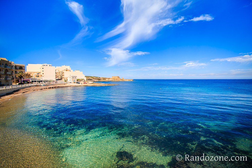 Puis, nous continuons notre chemin, en longeant toujours la mer, mais sur la route cette fois. Nous découvrons une jolie crique où deux personnes font de la plongée sous-marine : Qbajjar Bay. Il parait que c'est fantastique de plonger ici, qu'il y a plein d'endroits parfaits pour cette activité. Nos pas nous mènent ensuite à Marsalforn, où nous sortons notre casse-croute et faisons une halte face à cette eau azur et juste incroyablement transparente.