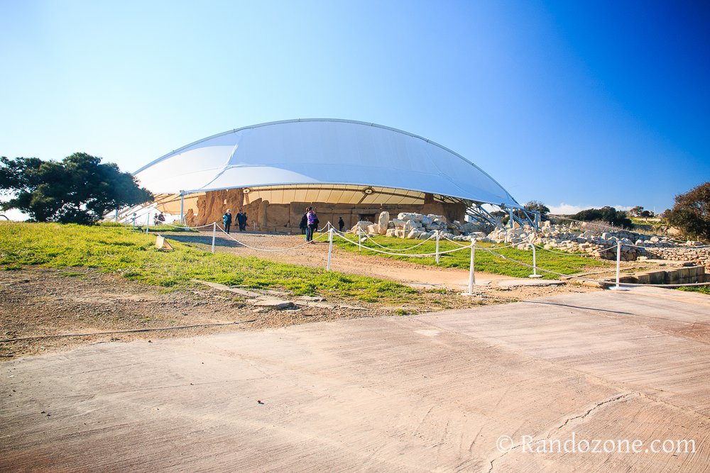 En quittant la route et en allons sur une piste à droite, nous arrivons aux temples préhistorique de Hagar Qim qui regroupe des vestiges archéologiques. Le temps nous manque, nous ne ferons pas la visite, mais un bien joli spectacle nous attend.