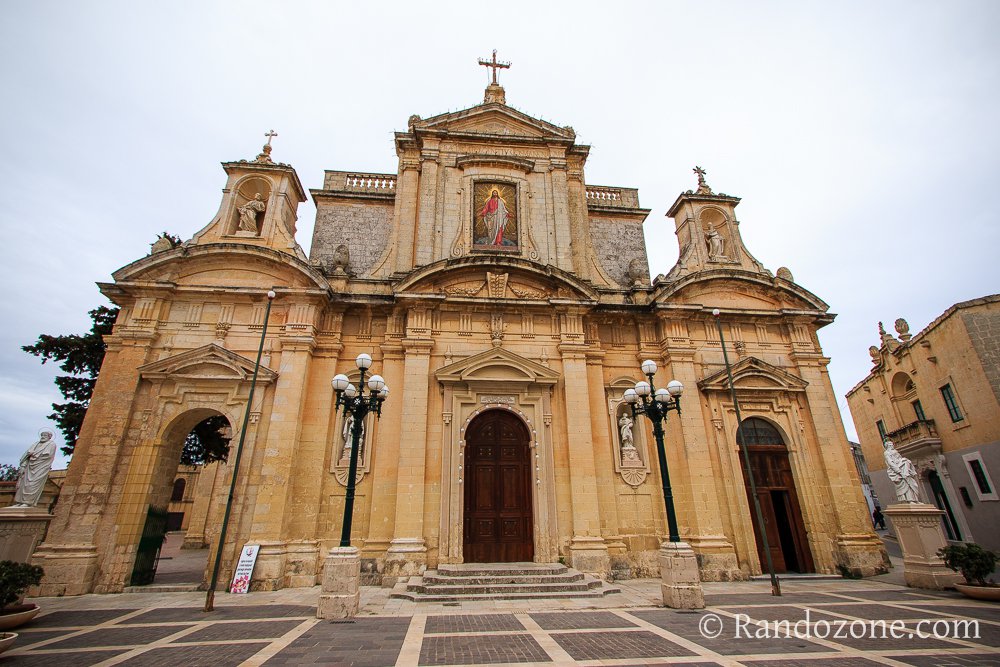 Le chemin constitué de cailloux descend maintenant un petit moment. Il nous ramène à une piste goudronnée, qui passe entre des jardins et longe l'église de Notre Dame du Mont Carmel. Sur notre gauche se trouvent des grottes, certaines sont d'ailleurs utilisées. Des arbres sont en fleurs par ici, mais j'hésite, est-ce que ce sont des fleurs de pêchers ou d'amandiers ? Notre guide tranche pour les amandiers. À Malte et Gozo, le climat qui règne toute l'année est parfait pour la culture des olives. Cela permet aux agriculteurs de produire de l'huile d'olive. Ici, on trempe le pain dans une flaque d'huile d'olive couleur dorée, et on accompagne le tout avec un petit vin rouge et des fromages de chèvres aux herbes, un régal en apéritif ! Et le tout a bien sur été produit sur Malte ou Gozo.