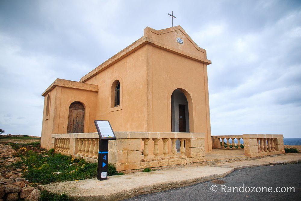 Nous marchons avec la mer Méditerranée à notre droite. Que c'est agréable de randonner le long de falaises ! Pas un bruit, juste celui des vagues et du vent qui souffle un peu. Pour un peu, et on se croirait seuls au monde... Nous passons près de l'église de St Mary Magdalene. Depuis que nous sommes descendus d'avion, nous avons pu nous apercevoir qu'à Malte, il y a des églises un peu partout. Elles sont très belles, avec leurs pierres claires tirant vers le doré, et certaines ont des coupoles, comme on peut en voir en Italie.