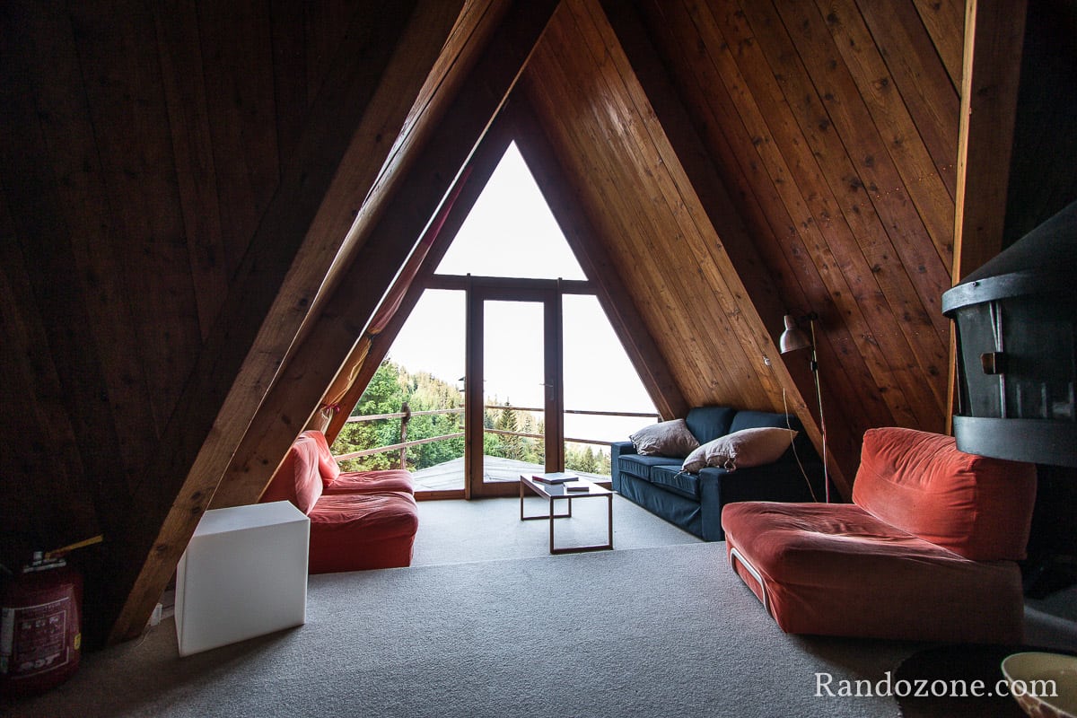 Au milieu de la forêt (et des remontées mécaniques de la station) ils sont vraiment superbes, chacun étant différents des autres. Un des deux chalets servira à tout le monde pour se retrouver aux repas du matin et du soir.