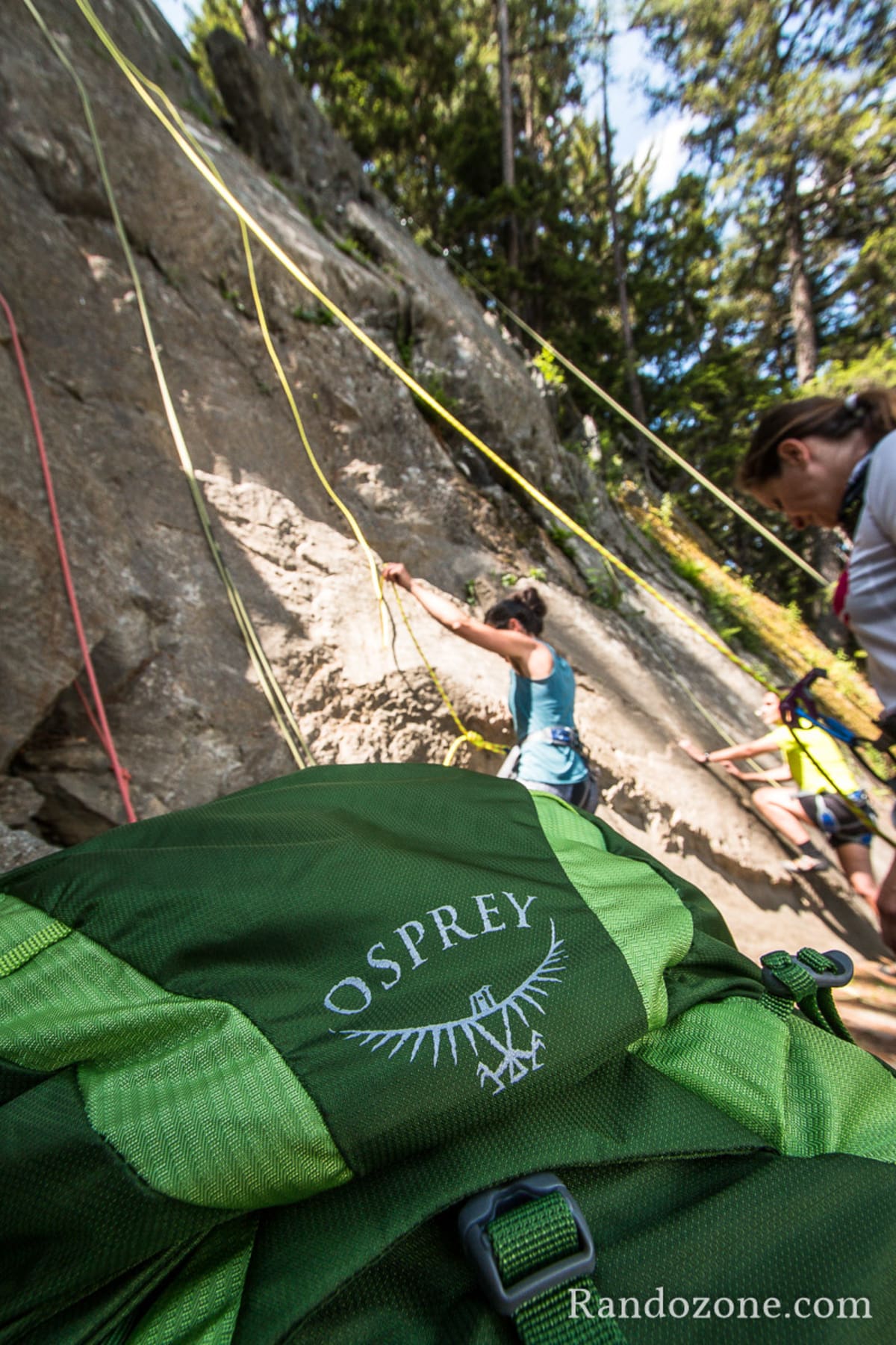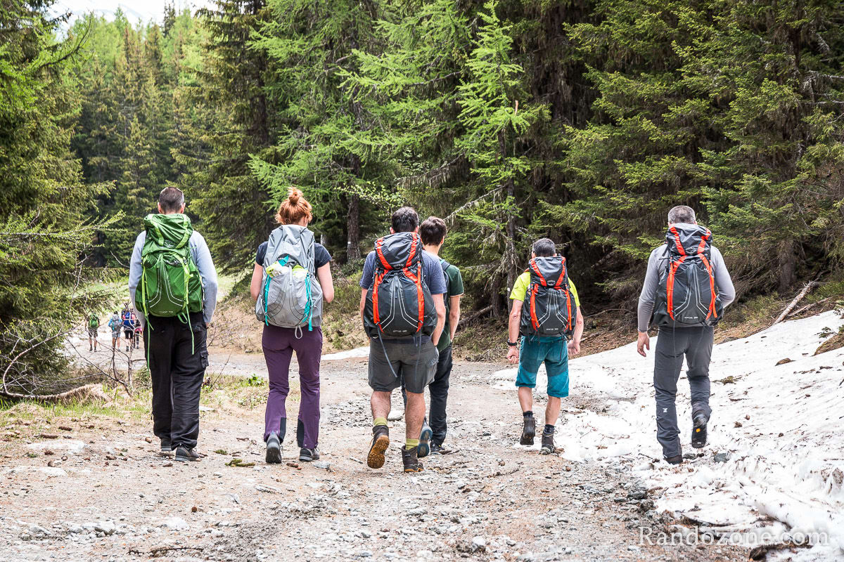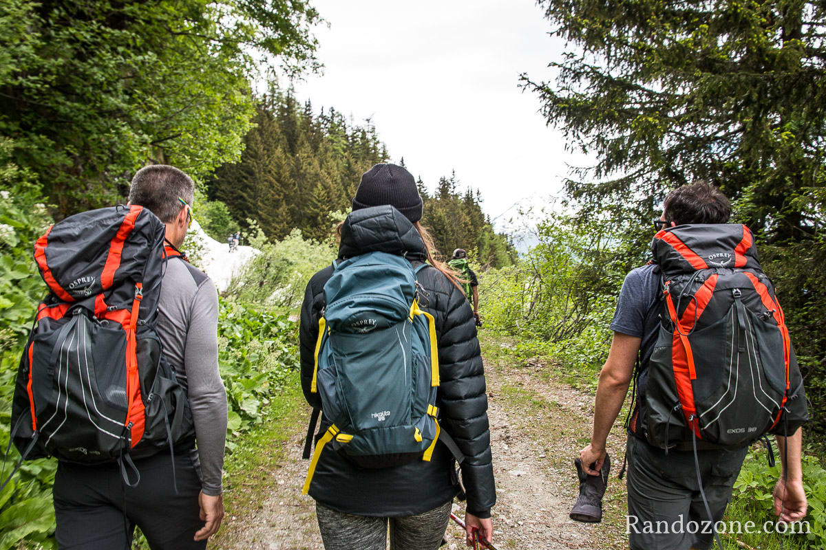 Cette randonnée nous permet de tester les nouveaux sacs à dos très légers Exos 38 (le modèle femme est le Eja 38) ainsi que des chaussure de la marque Lowa.