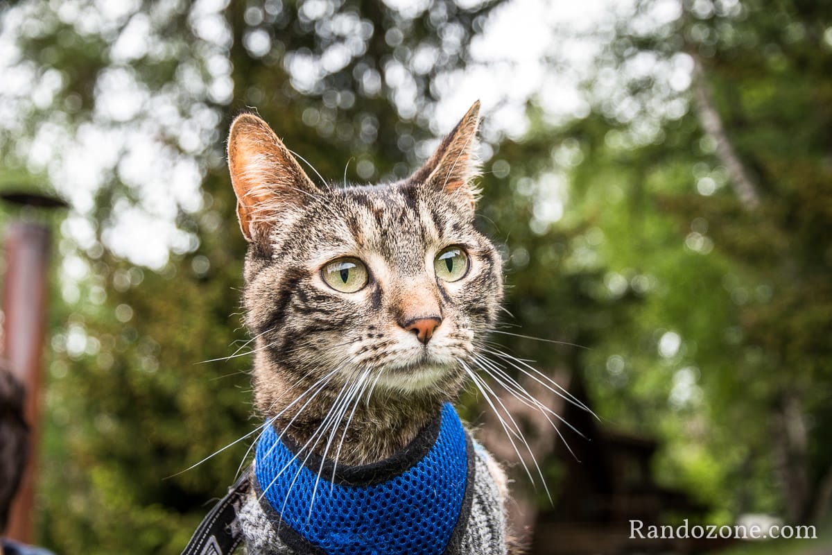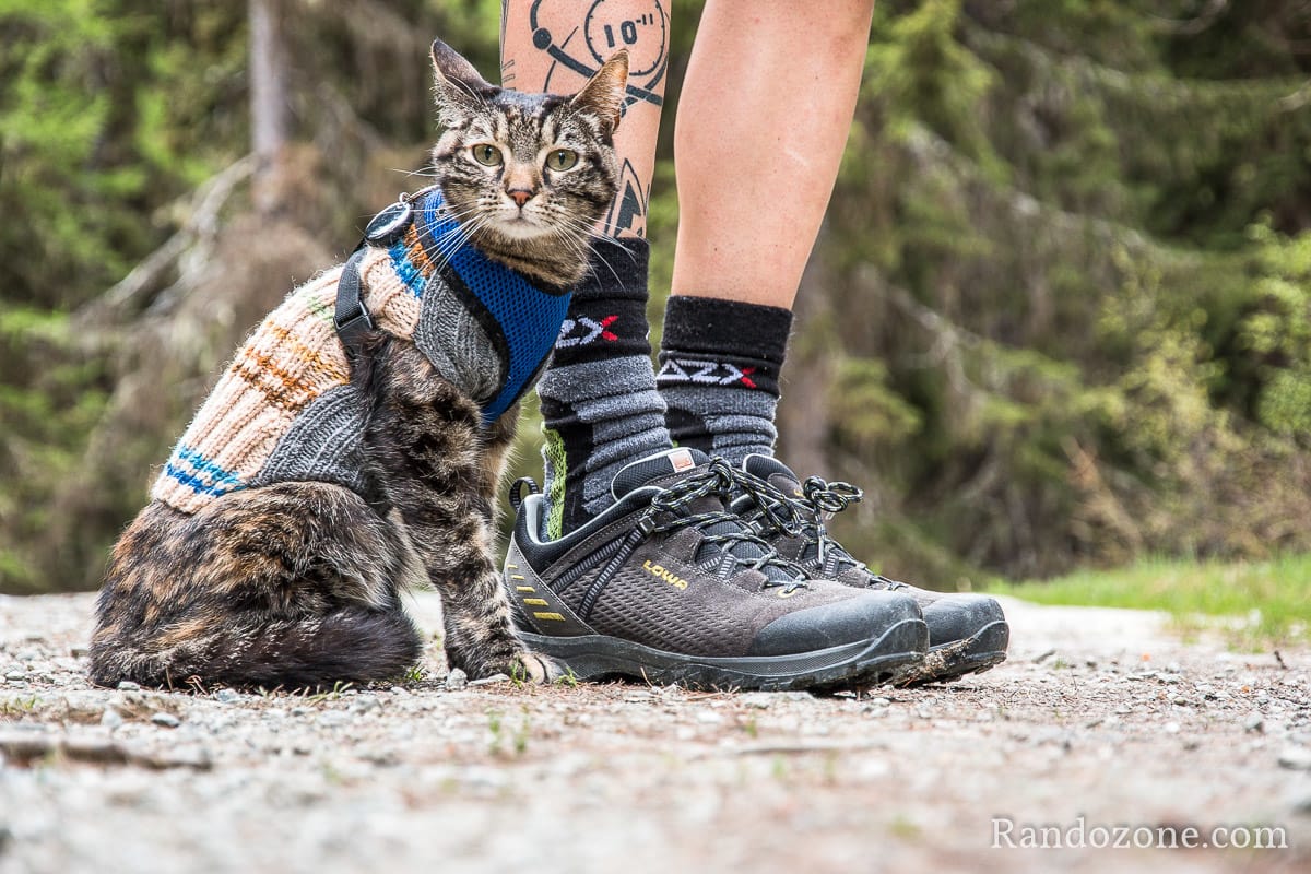 Mais pour le moment on monte tranquillement. Tout le monde discute et le chat est toujours là. Son maître lui a bricolé une installation pour qu'il puisse être dans le sac à dos Osprey mais finalement il passera pas mal de temps dans les bras de son maître.