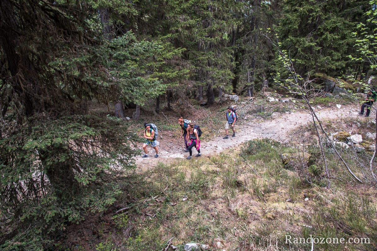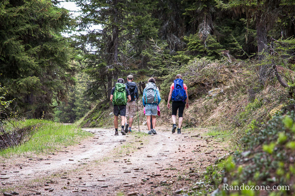 On a tous rendez vous pour le petit déjeuner dans le même chalet et Cédric nous rejoint pour nous guider sur la randonnée organisée ce matin. On part des châlets après un bon petit déjeuner et on traverse une partie de la station avant de rentrer dans la forêt.