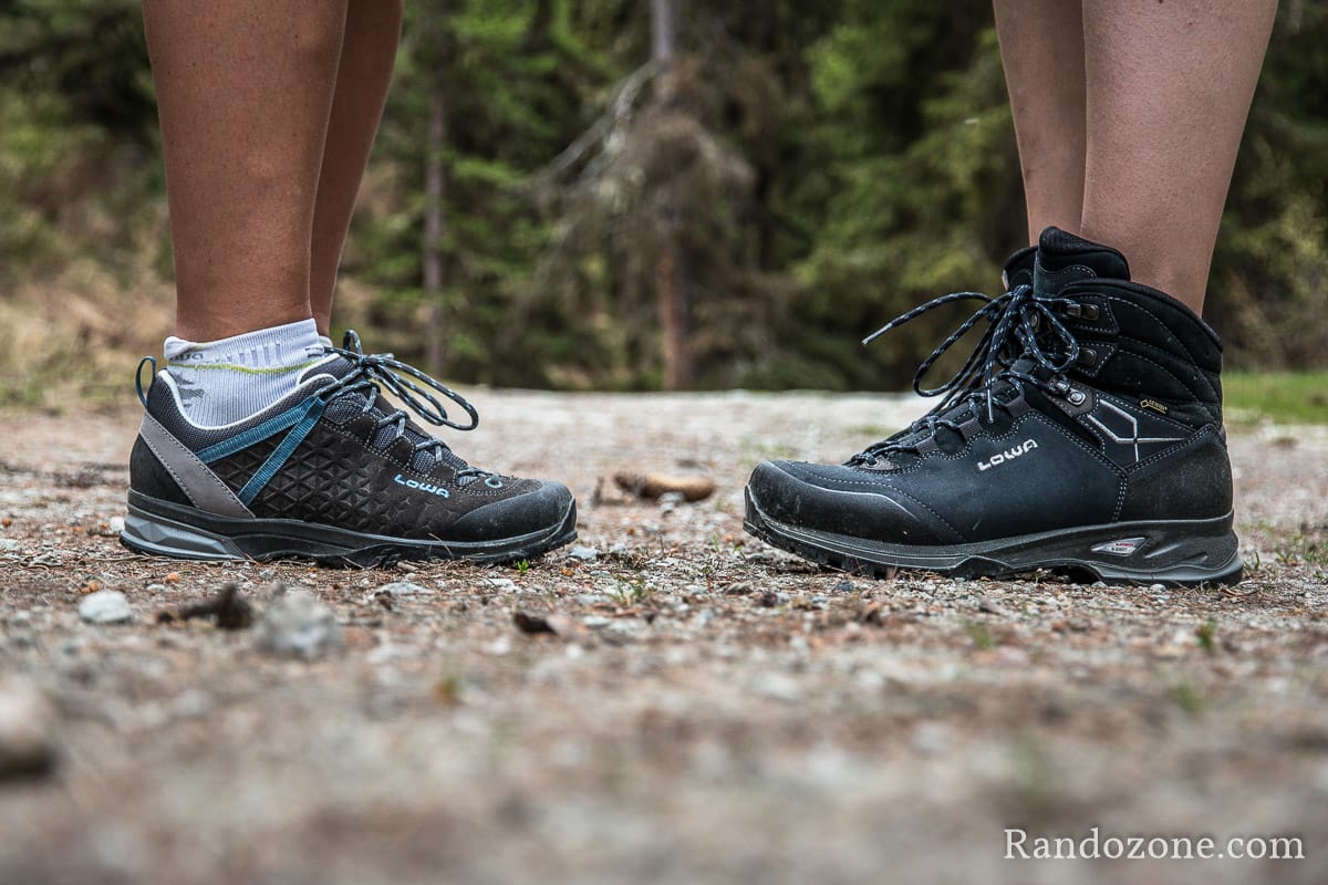 Et aux pieds, j'ai mis les chaussures que Lowa a mis à notre disposition. Ce sont des chaussures de randonnée Lowa Arco LL LO dont je vous parlerai plus en détail dans le test complet. J'ai aussi mis le tee-shirt technique respirant offert par Dynafit. Puisqu'on vous dit que c'est un week-end de travail ! Il va falloir tester tout ce matériel et écrire des comptes rendus...