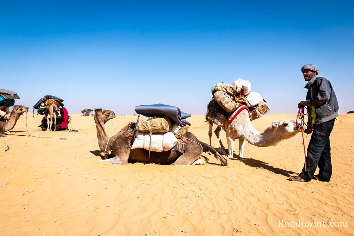 Le campement est démonté, les chameaux chargés, notre journée de marche peut débuter.