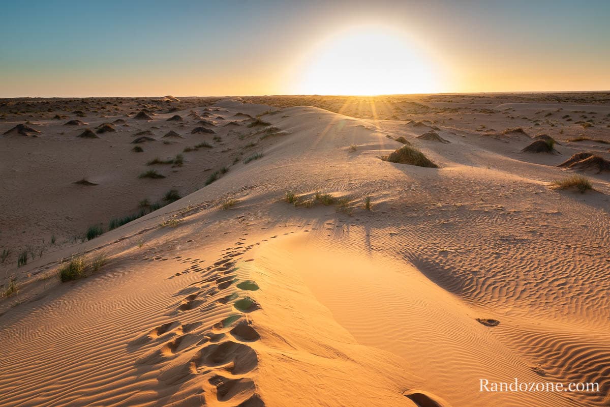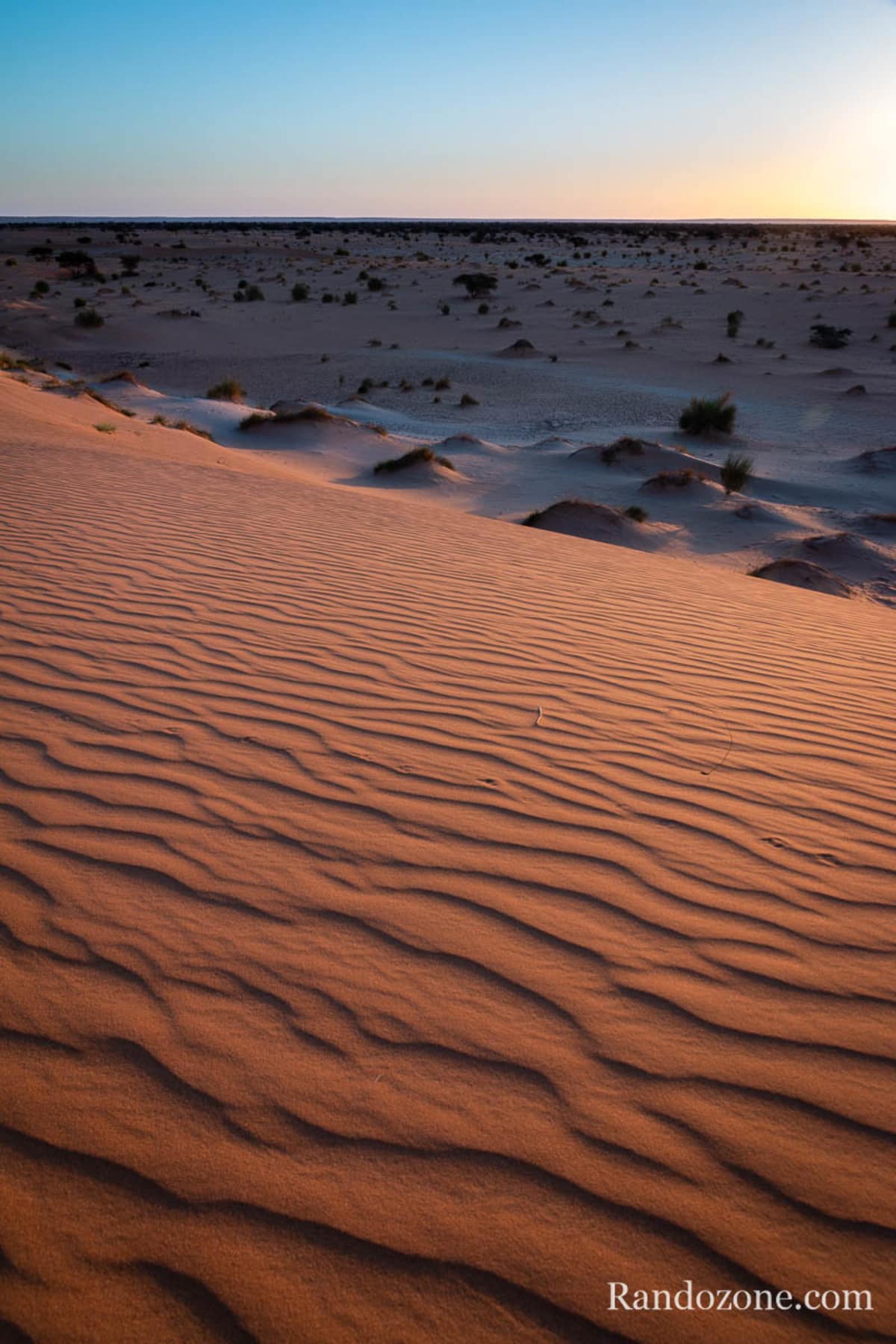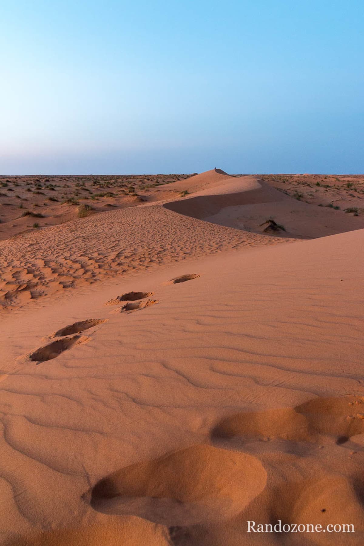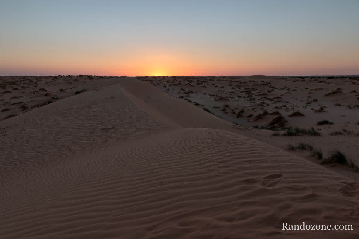 Cela pourrait paraître monotone, mais c'est tout le contraire. Les zones de bivouac se ressemblent mais les dunes ne sont jamais, les mêmes. On ne se lasse pas des levers et couchers du soleil avec ces couleurs fantastiques qui embrasent le ciel.