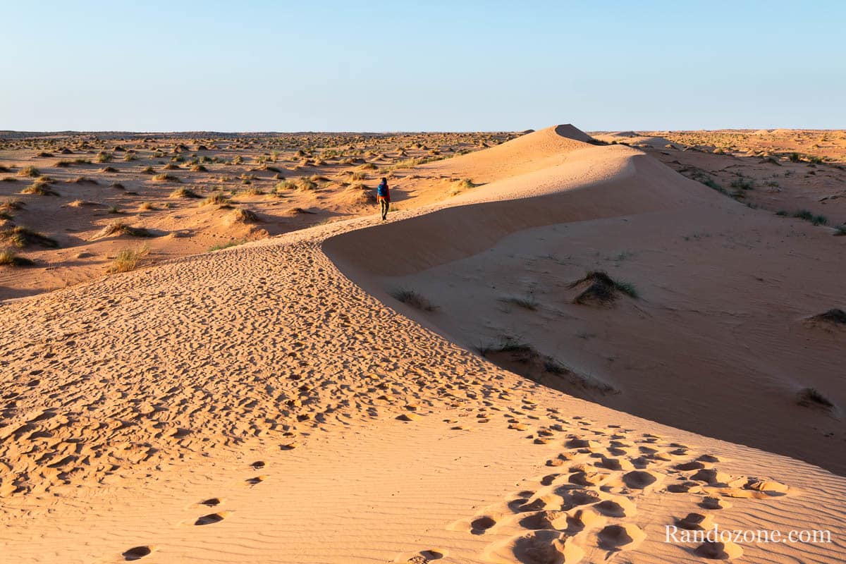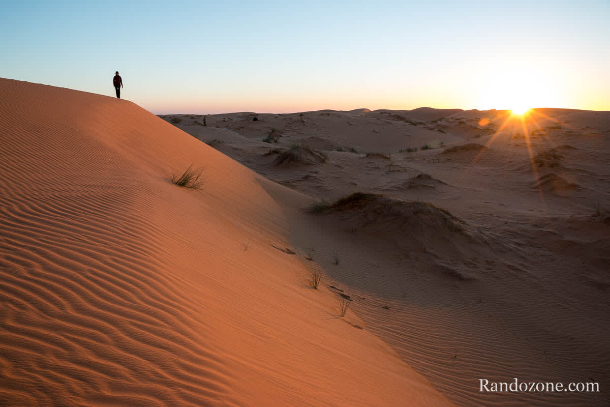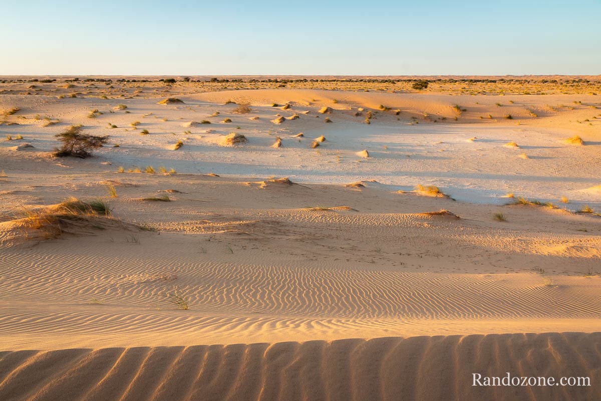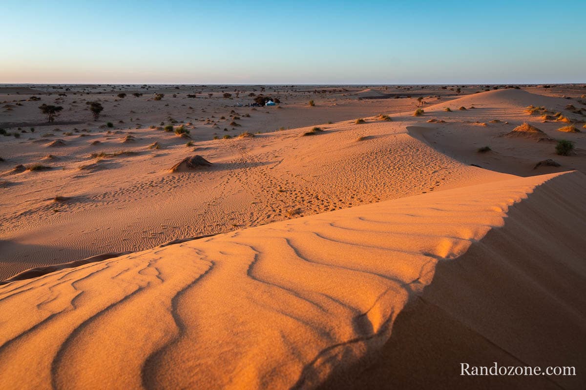 Cela pourrait paraître monotone, mais c'est tout le contraire. Les zones de bivouac se ressemblent mais les dunes ne sont jamais, les mêmes. On ne se lasse pas des levers et couchers du soleil avec ces couleurs fantastiques qui embrasent le ciel.
