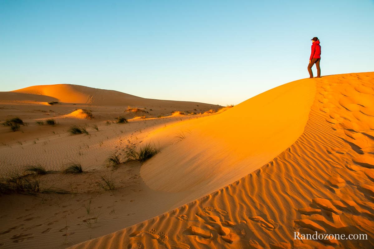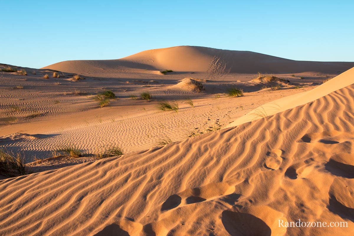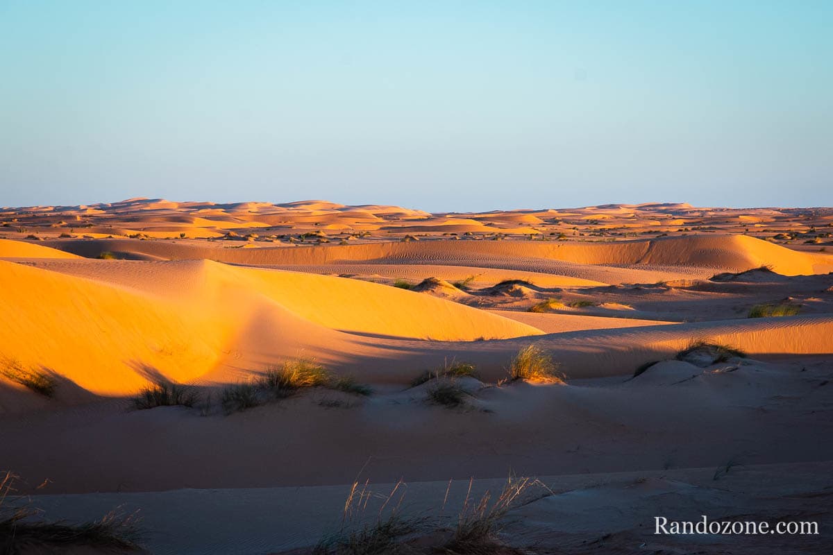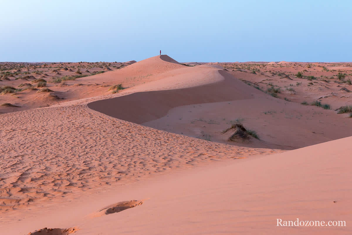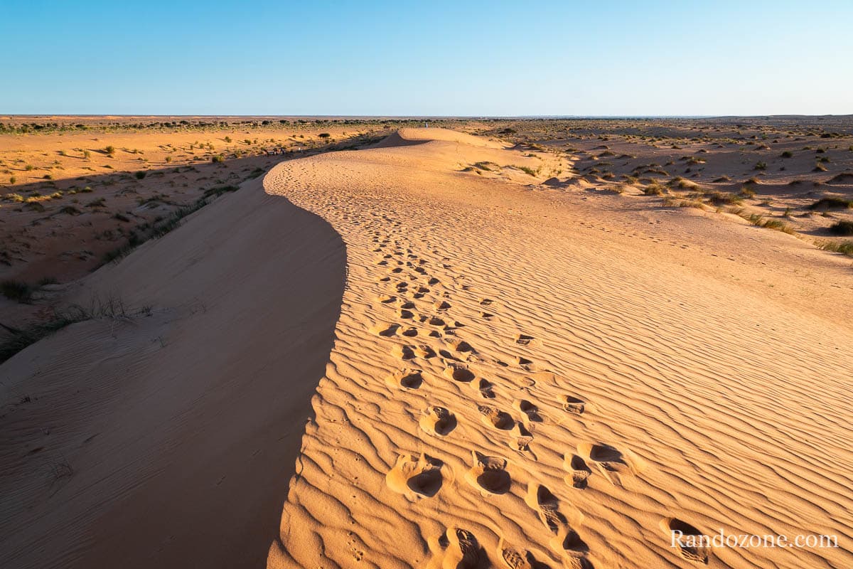 Cela pourrait paraître monotone, mais c'est tout le contraire. Les zones de bivouac se ressemblent mais les dunes ne sont jamais, les mêmes. On ne se lasse pas des levers et couchers du soleil avec ces couleurs fantastiques qui embrasent le ciel.