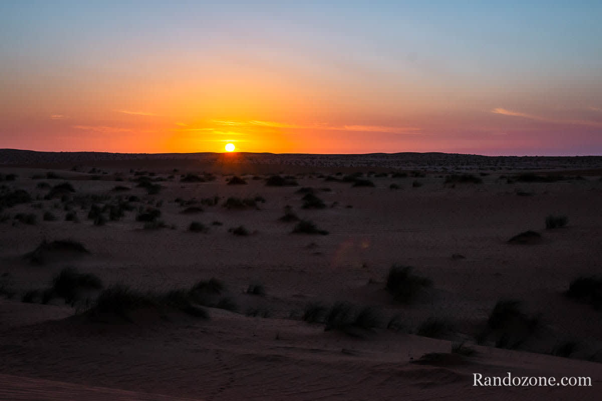 Puis nous montons au sommet de la dune qui domine le campement pour profiter du coucher de soleil. Que c'est beau d'assister à ce spectacle hors de prix !