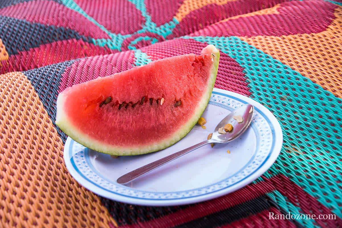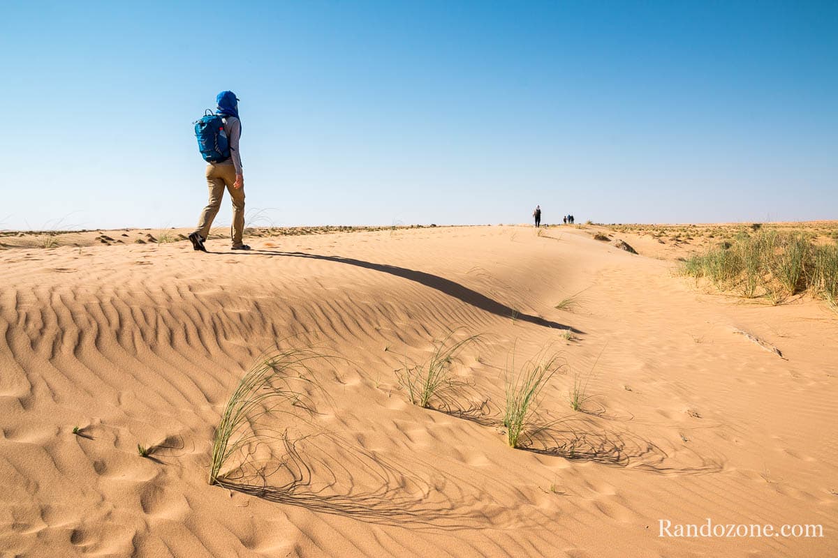 Le niveau de ce trek est assez faible donc on ne marche pas beaucoup. Mais le rythme de Salem est assez élevé. Et il ne s'arrête jamais de marcher sauf pour nous proposer des dates toutes les heures. Donc finalement on avance à un bon rythme. C'est parfait pour un premier trek dans le désert et profiter des journées de marche et des soirées dans le désert.