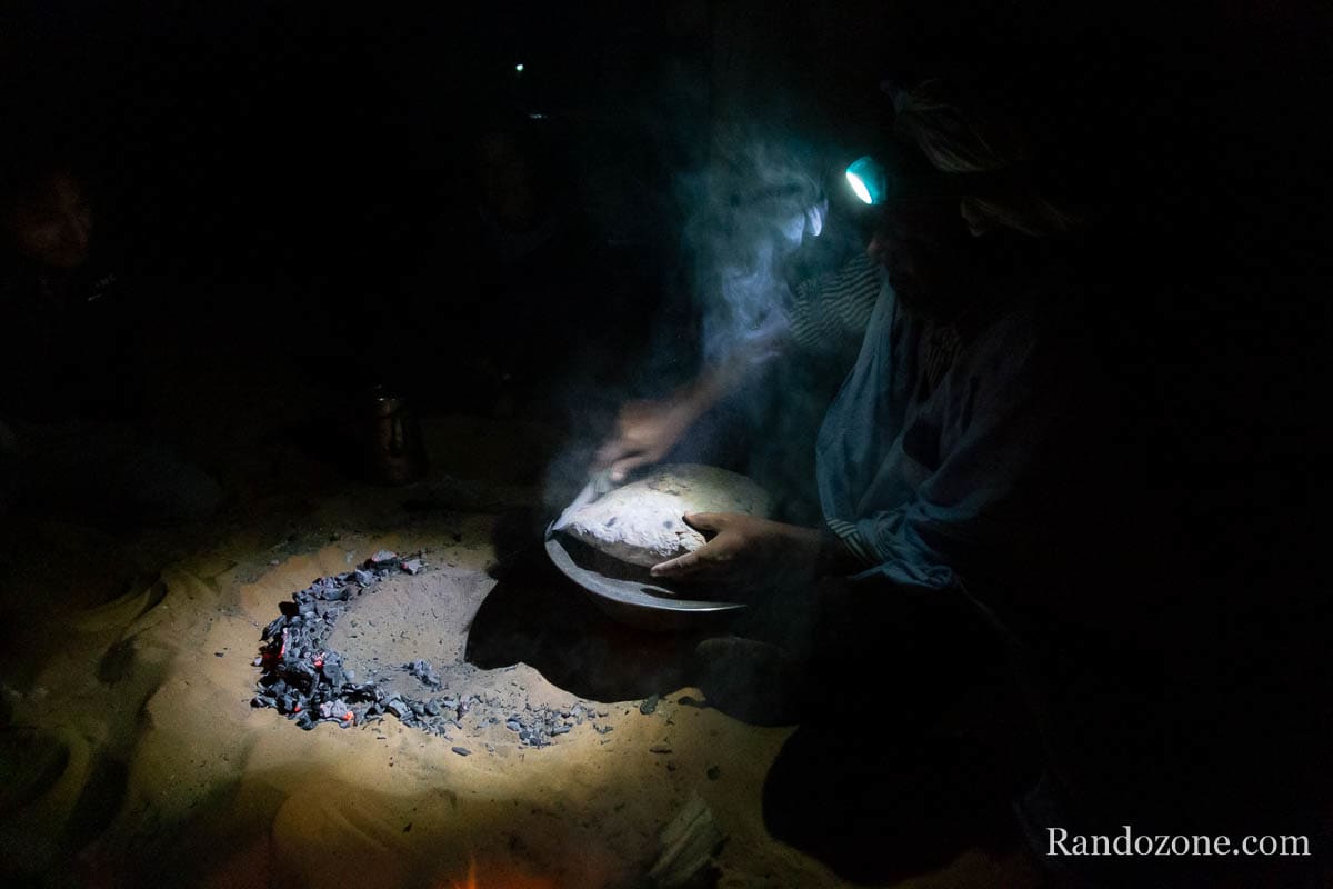 Dans le silence du désert, nous apercevons au loin un troupeau de chèvres qui gambade. Notre soirée débute et le balais des lampes frontales commence autour du feu de camp. Cette nuit aussi nous dormirons à merveille, lovés dans nos épais sacs de couchage, au coeur de ce décor des mille et une nuits.