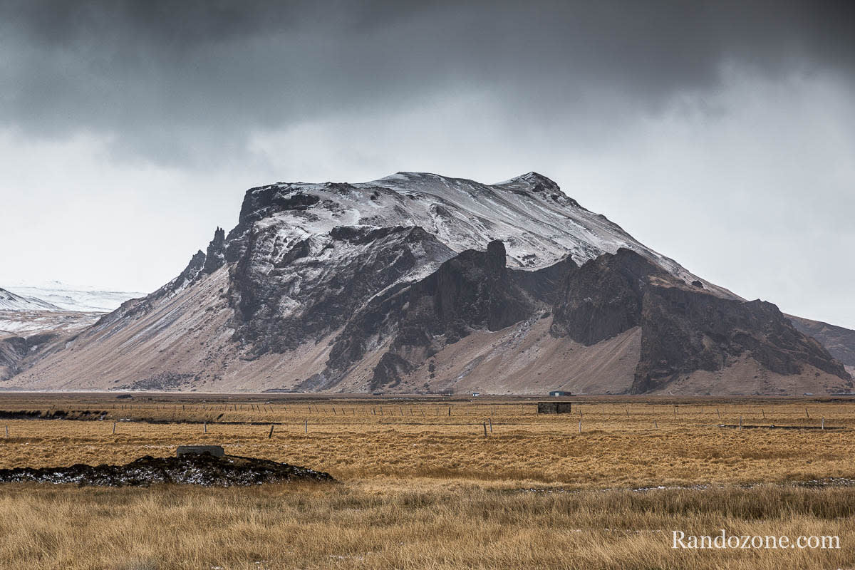 Sur la route, je profite de ces paysages islandais uniques au monde avec en plus cette touche blanche de neige sur certains sommets. Un peu plus loin, la neige est de plus en plus présente. On alterne entre des averses de pluie, du soleil et même un peu de neige. Le séjour s’annonce très bien. La météo prévue est assez clémente avec des alternances de nuages et d’éclaircies et quelques chutes de neige aux endroits où nous serons.