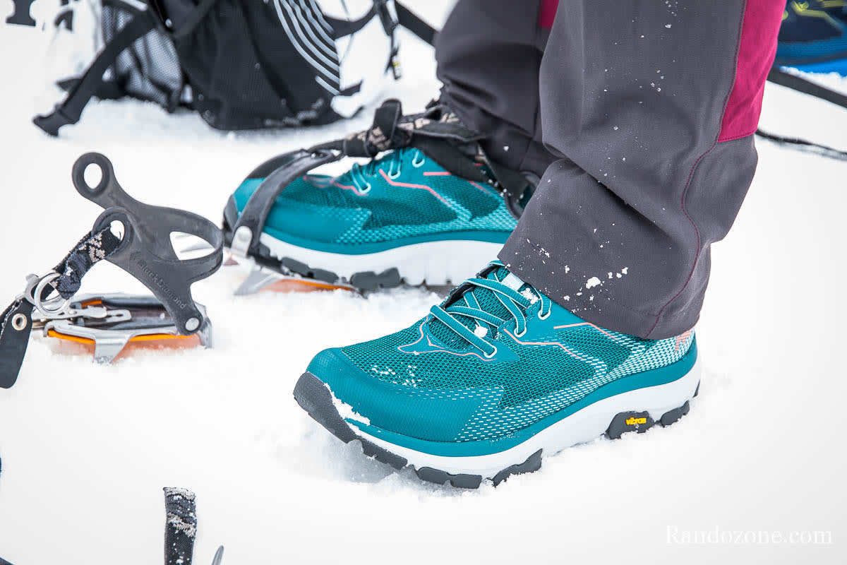 Les chaussures, elles, tiennent bien le pied. La première impression quand on les chausse, c’est cette sensation que le coup de pied et serré par la chaussure. Bizarre au début et super agréable ensuite quand on se rend compte que le pied est bien maintenu dans la chaussure sans trop de pression. En ce qui concerne l’amorti, je ne peux pas en parler pour le moment car la neige n’est pas le meilleur terrain pour tester cette caractéristique. Mais comme j’ai pu conserver les deux paires du test, je ferai d’autres sorties sur des sentiers des Pyrénées pour tester plus longuement ces deux paires et j’en parlerai dans des tests complets. Ce que je peux vous dire c’est mes pieds sont restés bien au sec malgré la neige, que le pied est bien tenu et qu’on a envie de courir avec ces chaussures qui sont vraiment très légères.