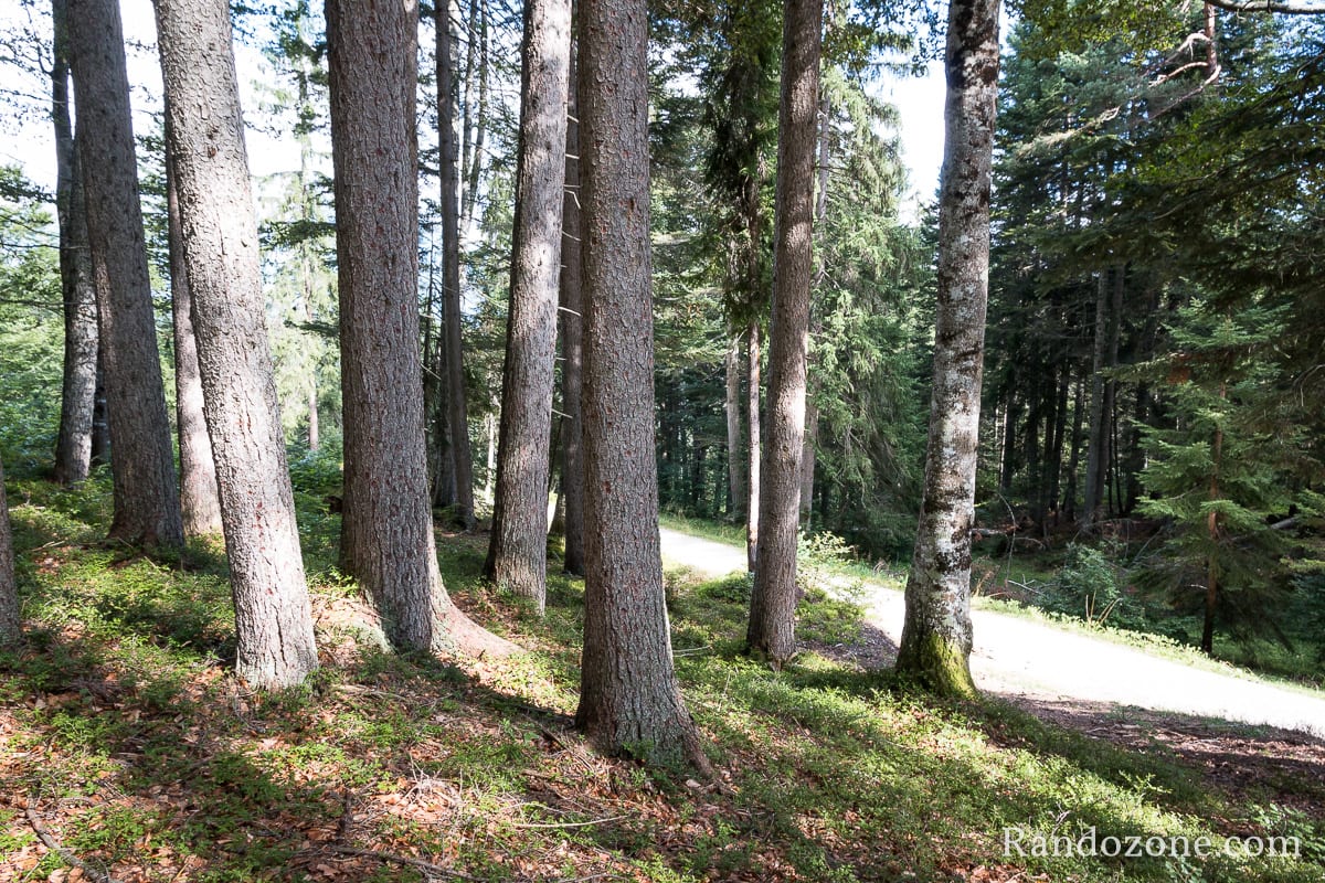 Un peu plus loin, je me trompe et tourne à gauche un peu trop tôt. C'est l'entrée d'un parcours balisé qui accueille les skieurs de fond en hiver. Je suis dans la forêt et je croise pas mal de monde qui se balade soit à pied soit en vélo. C'est vraiment sympa. Avec le téléphone et le gps, je regarde où je suis et le chemin qu'il faut que je prenne pour rejoindre le lac. Pas de problème il y a plusieurs possibilités. J'essaye de marcher rapidement pour ne pas perdre le temps car j'aimerai bien avoir le temps d'atteindre le lac.