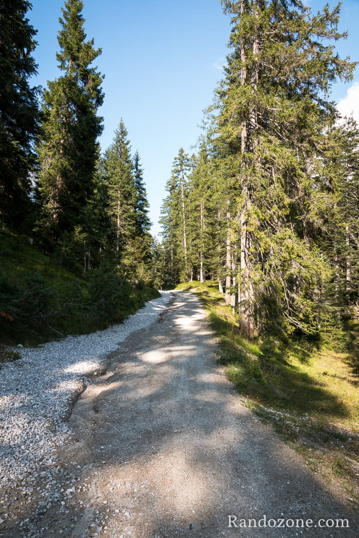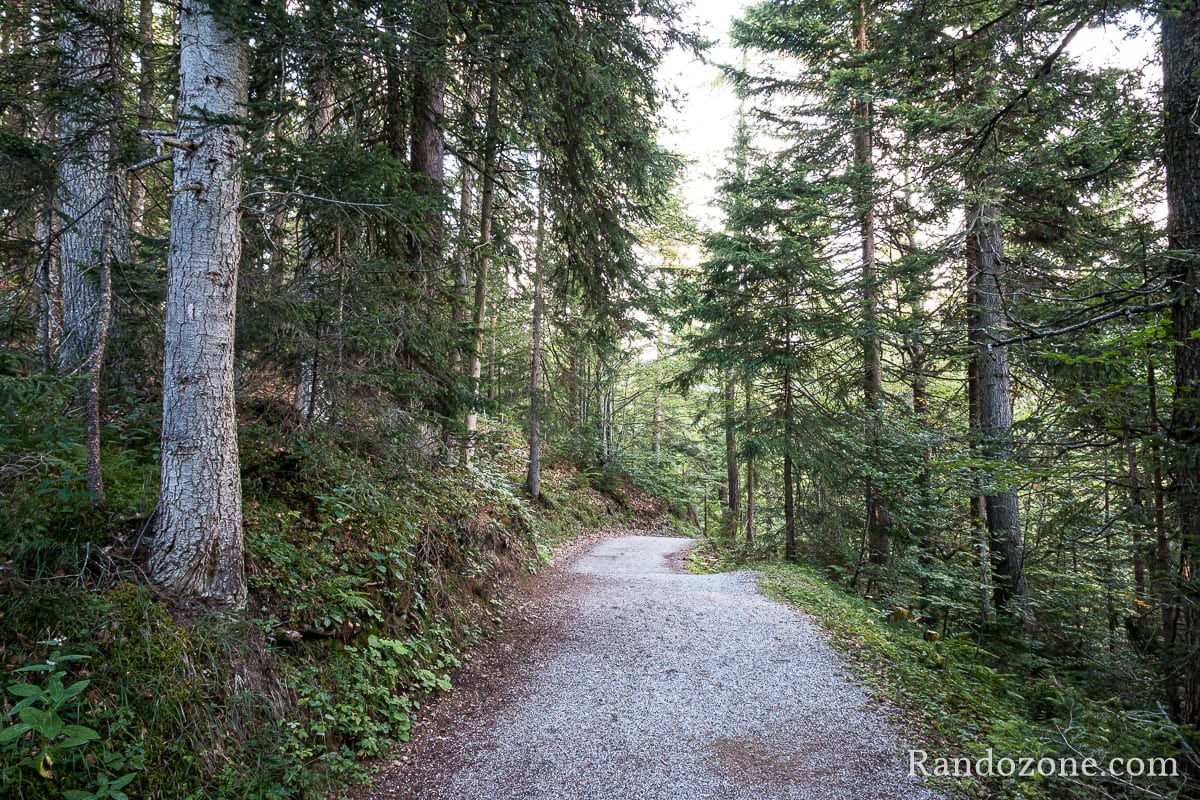 Je reprend la randonnée assez rapidement pour profiter du soleil et des bonnes conditions de chaleur. La descente se fait maintenant dans la forêt jusqu'à la route. C'est alors la fin de la randonnée. Pour revenir au village de Seefeld, je vais prendre le bus 403. L'arrêt est juste à 400 mètres à gauche une fois arrivé à la route. C'est parfait. Pour moins de 4 euros je peux tranquillement revenir au village et il n'y a presque personne dans le bus.