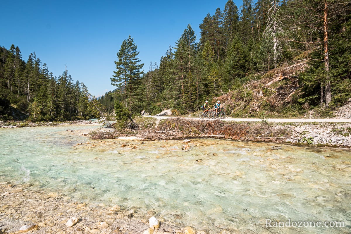 Nous roulons un peu sur la route au début pour rejoindre le village de Scharnitz qui est le camp de base des randonneurs, alpinistes et vététistes qui vont dans le Karwendel. Le Karwendel est protégé par un parc naturel qui est le plus grand parc naturel des Alpes orientales.