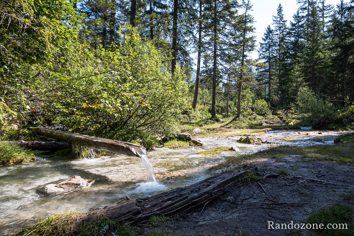 Comme on est samedi, il y a beaucoup de monde sur la piste. On double des randonneurs, des familles avec des enfants en vélo... C'est assez sympa de rouler sur cette piste et notre premier arrêt se fait au bord de la rivière qu'on est en train de remonter. La couleur de l'eau est superbe et avec les montagnes en arrières plans, c'est un paysage magnifique qui s'offre à nous.