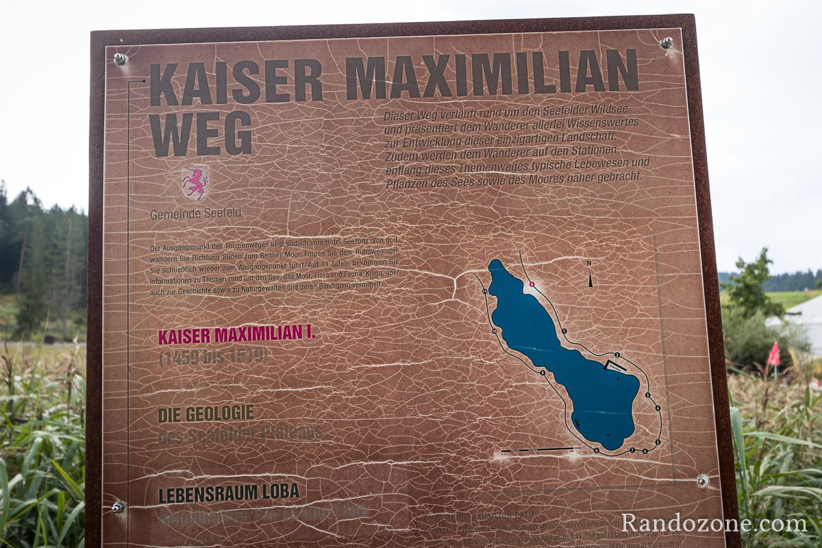 Depuis l'hôtel, je passe à l'église Seekirchl qui sera le point de départ de la randonnée. Je continue un peu sur la route avant de récupérer les panneaux de la randonnée.