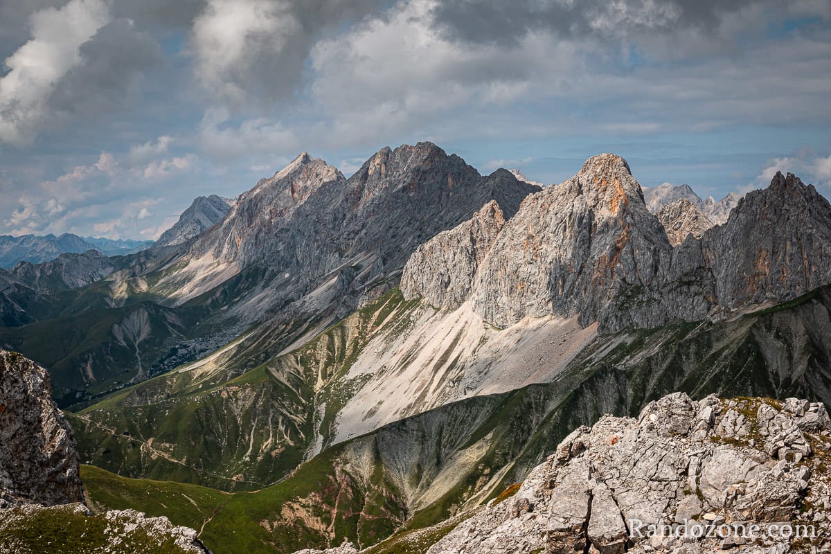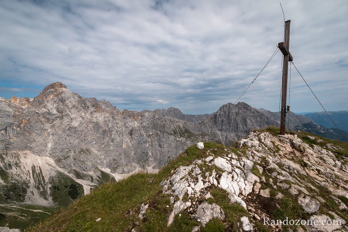 Quelques minutes plus tard j'arrive enfin au sommet du Gehrenspitze après 3h30 d'effort. L'altitude est relativement modeste (2 367 mètres) mais la vue est splendide. La dernière heure est vraiment fantastique avec des panoramas vraiment sympa. La randonnée vaut le coup juste pour cette partie. Au sommet je suis seul et je peux profiter d'une vue à 360 degrés. On voit nettement les villages et même Seefeld qui est assez loin mais qu'on reconnaît bien grâce à son église et son lac à côté du village.
