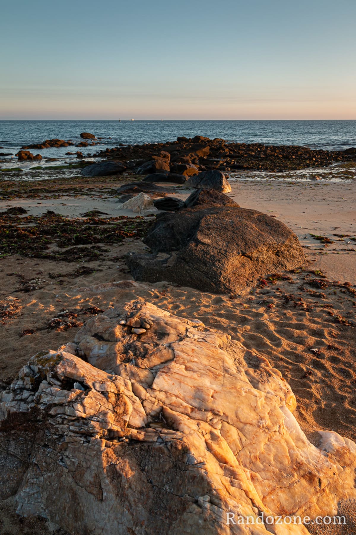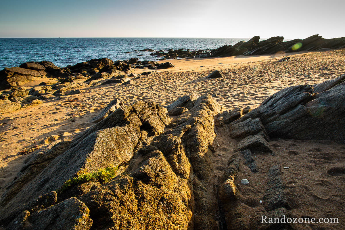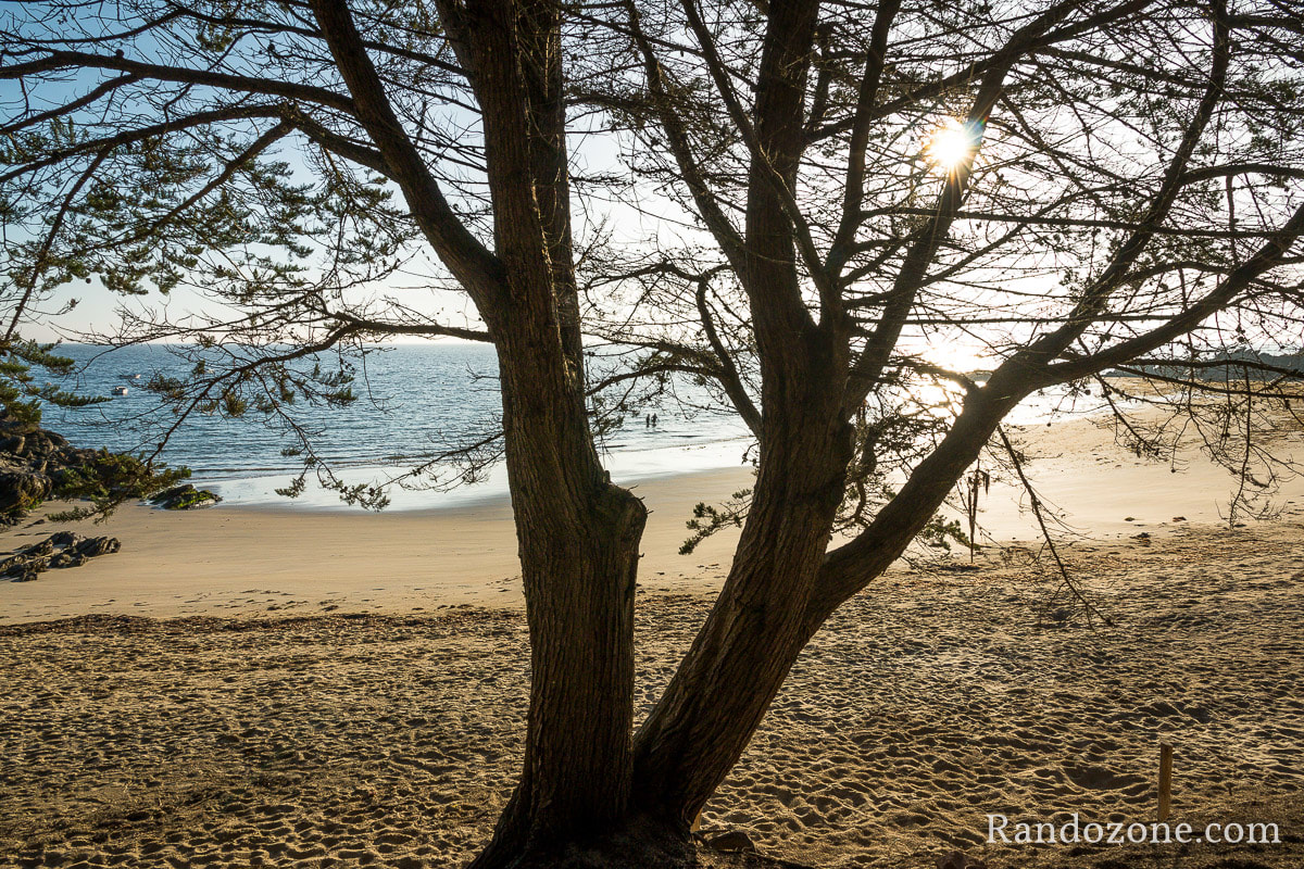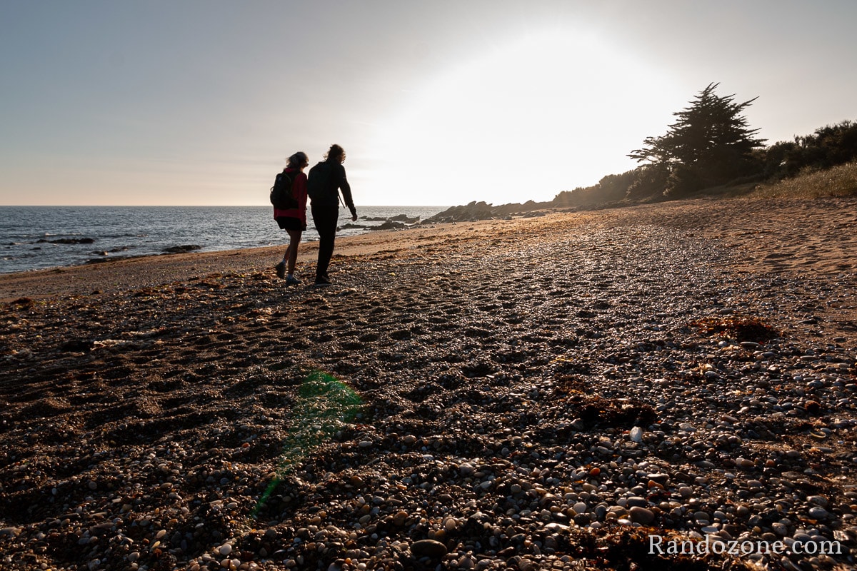 Nous commençons la randonnée directement depuis la plage de l'école de voile. Le soleil est en train de se monter lentement et la lumière est encore très belle. La température est idéale pour marcher et il n'y a personne à cette heure là de la journée. C'est l'avantage de venir hors saison dans ce genre d'endroits : il y a beaucoup moins de monde qu'en plein été et la météo est souvent très agréable au mois de septembre.