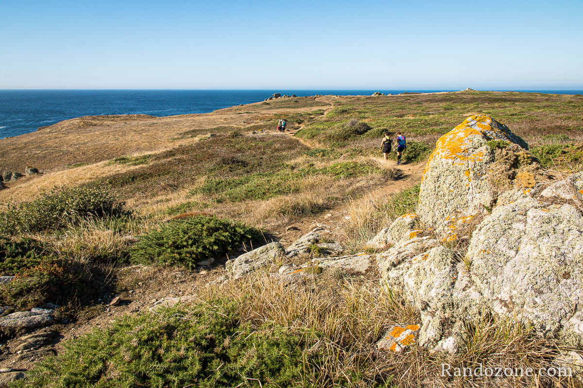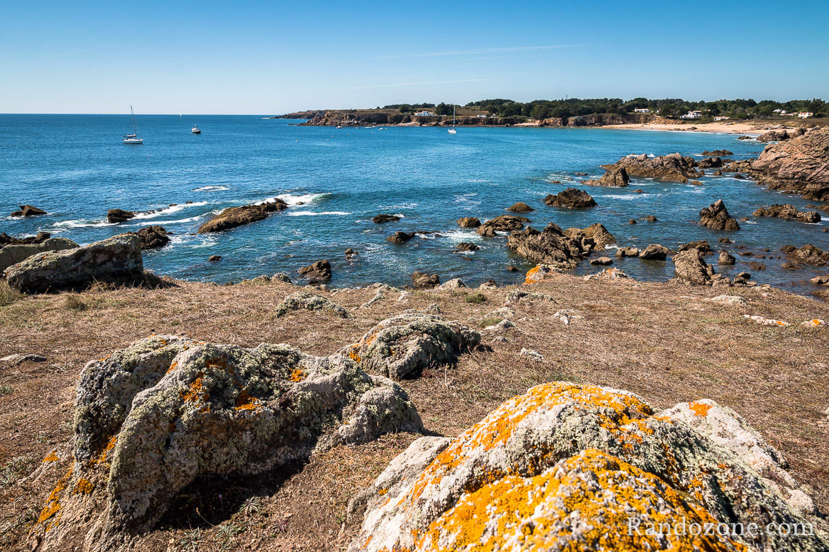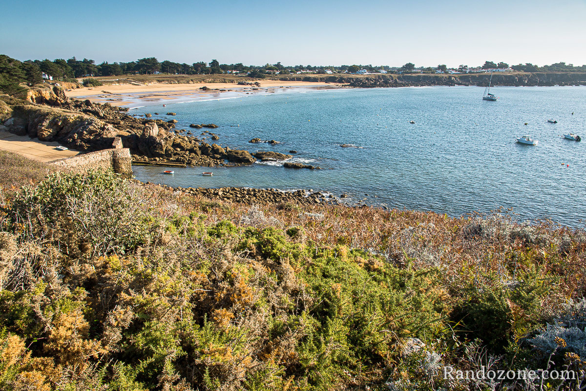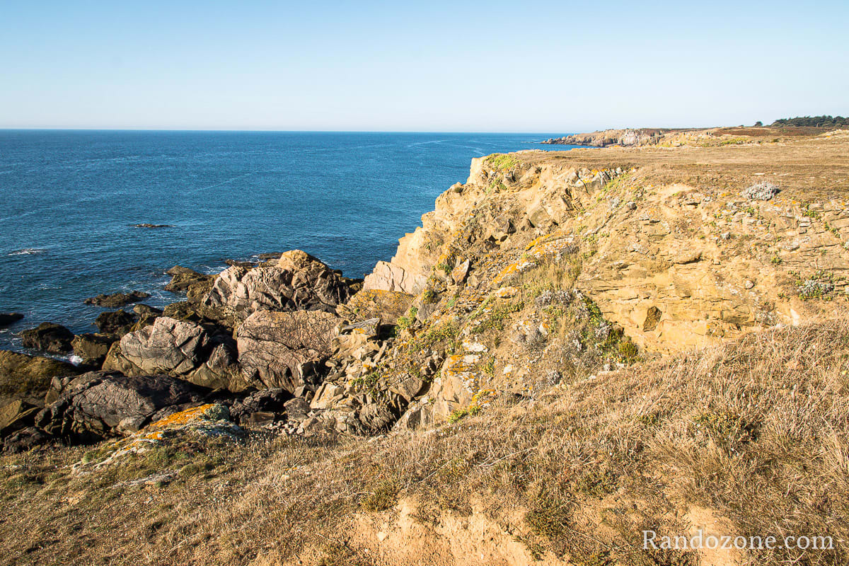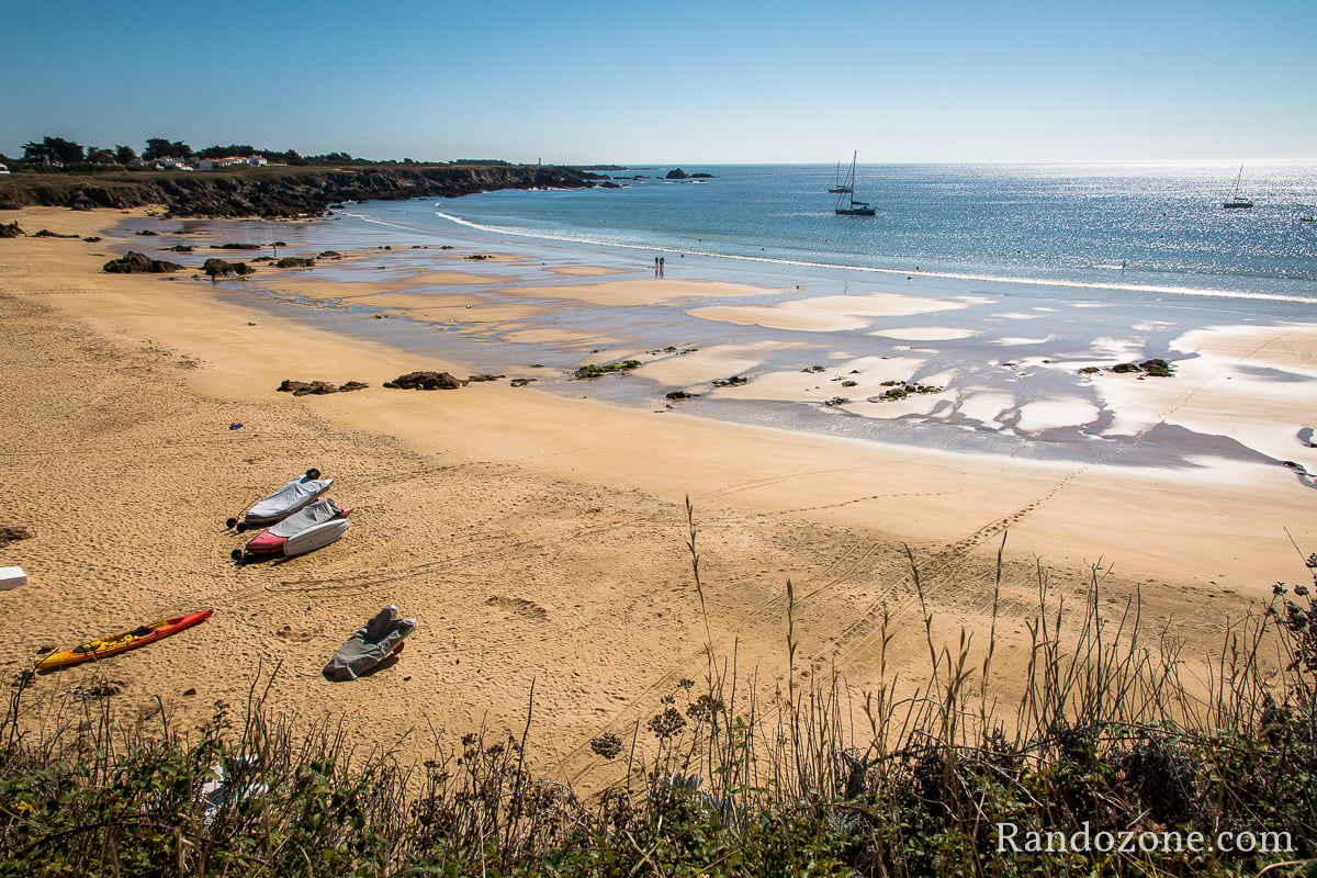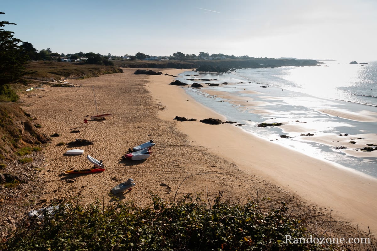Ensuite le sentier continue de longer la mer pour arriver à la magnifique plage des Soux. Nous arrivons par en haut et le panorama est superbe. Nous descendons à la plage pour une nouvelle petite pause. On en profite pour se tremper les pieds avant de reprendre la randonnée.