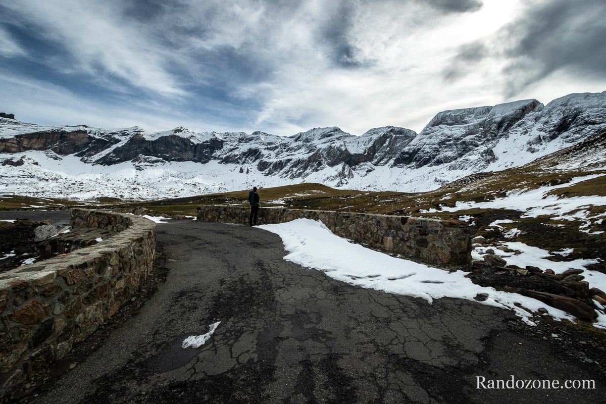 Mais bon, on a la chance de pouvoir se garer au parking le plus haut. Il ne reste ensuite plus que quelques centaines de mètres pour atteindre l'ancien parking et commencer à se balader dans le cirque de Troumouse. L'endroit est vraiment mafique et avec la neige, le soleil et le ciel bleu, on en prend plein les yeux.