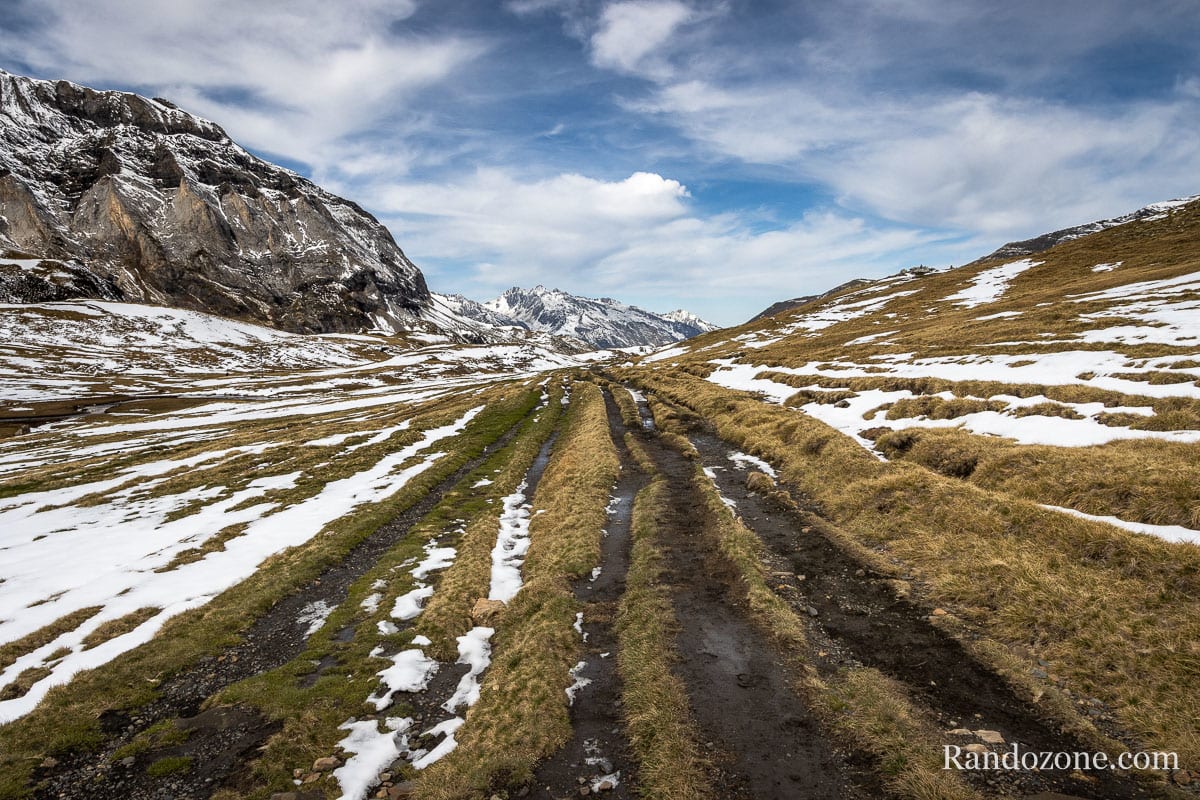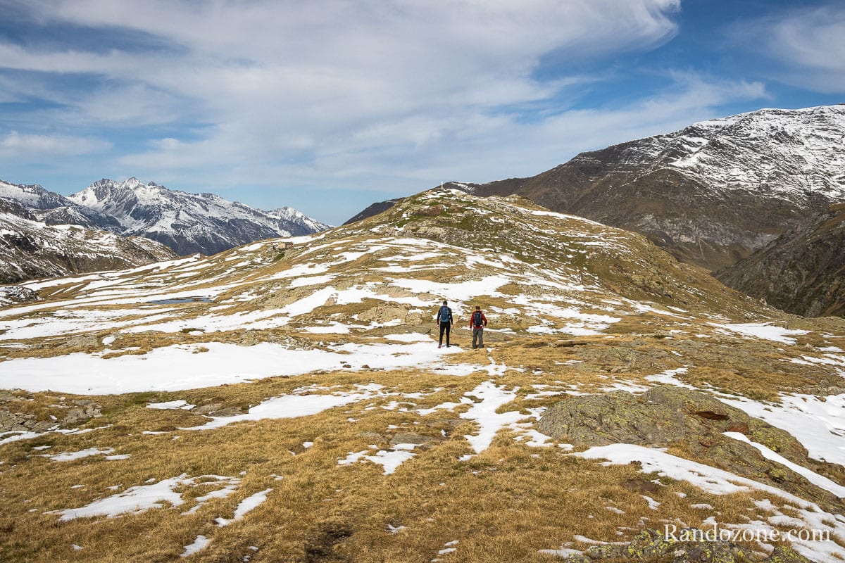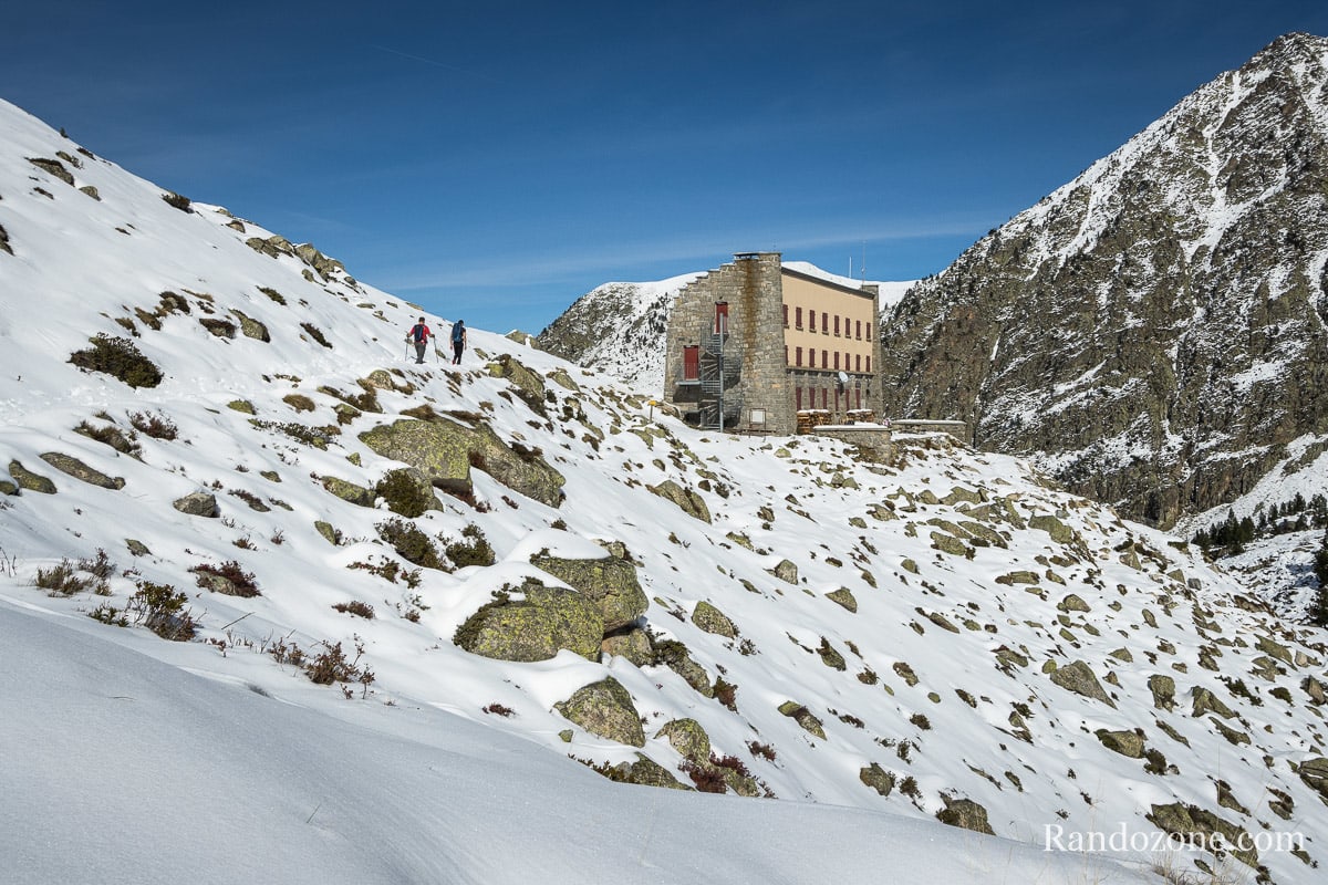 Après avoir mangé un peu, on continue à monter au dessus du refuge pour profiter de la vue et avoir un autre angle sur le refuge. On fait ensuite demi tour pour entâmer la descente en prenant les raccourcis qui coupent parfois la piste. La descente est donc assez rapide et facile. Mais en fin de randonnée, quand on passe à l'ombre il fait vraiment froid. En automne ou en hiver, pensez bien à prendre une veste coupe vent et une polaire (ou doudoune) pour être prêt à affronter le froid qui peut être piquand quand on est à l'ombre.