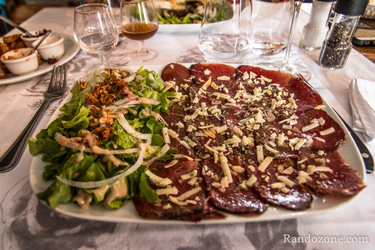 De l'entrée au dessert, on apprécie tout ce qu'on mange. J'ai une préférence pour le carpaccio de viande de boeuf (race Aubrac bien sûr) séchée et un Chocolat liégeois pour le dessert avec de la glace au lait de vache.