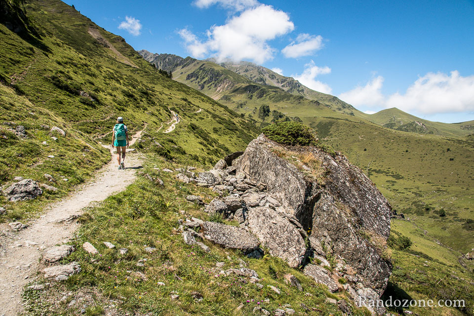 Puis nos pas nous mènent sur un joli plateau où se trouve un lacquet asséché. Nous pensions être arrivés mais le sentier continue sur le côté gauche. Cette montée est un peu rude, surtout en plein soleil mais elle n'est pas très longue.