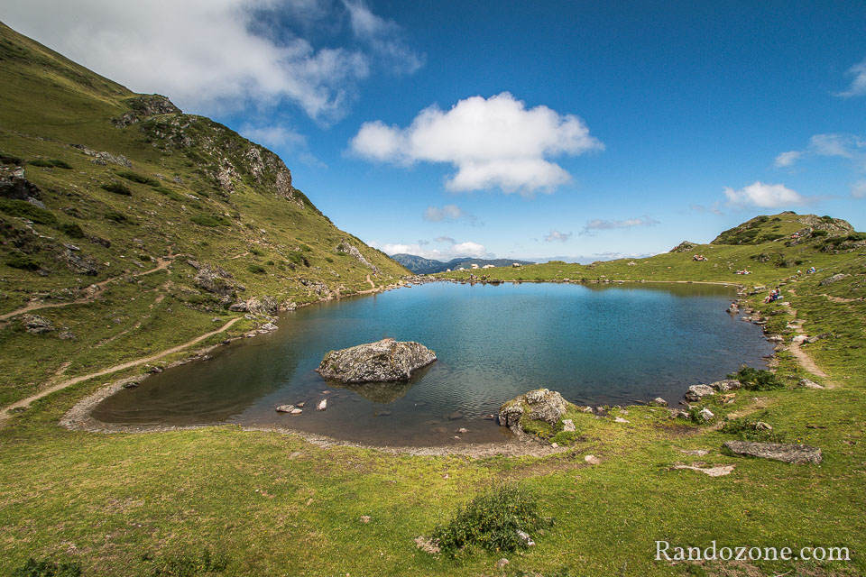 Pour avoir une vue encore plus jolie sur lui, vous pouvez monter à côté de la cabane qui se trouve juste au-dessus. Et si il vous reste des forces alors suivez le sentier qui grimpe encore au-delà. La vue sur le lac est de toute beauté.