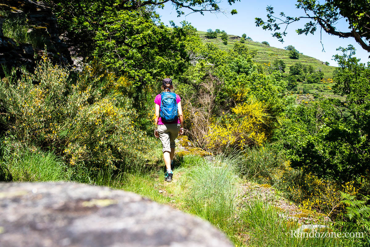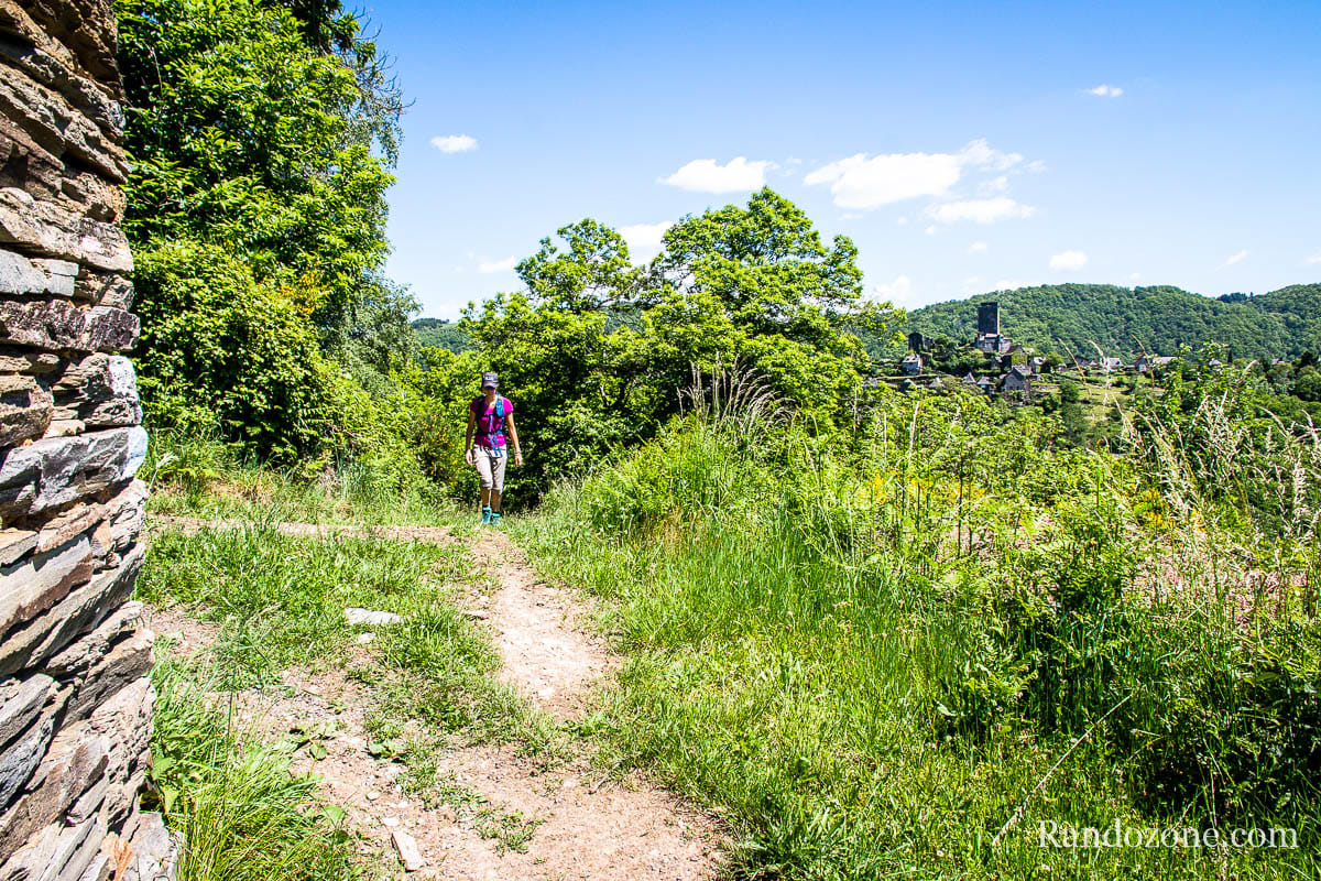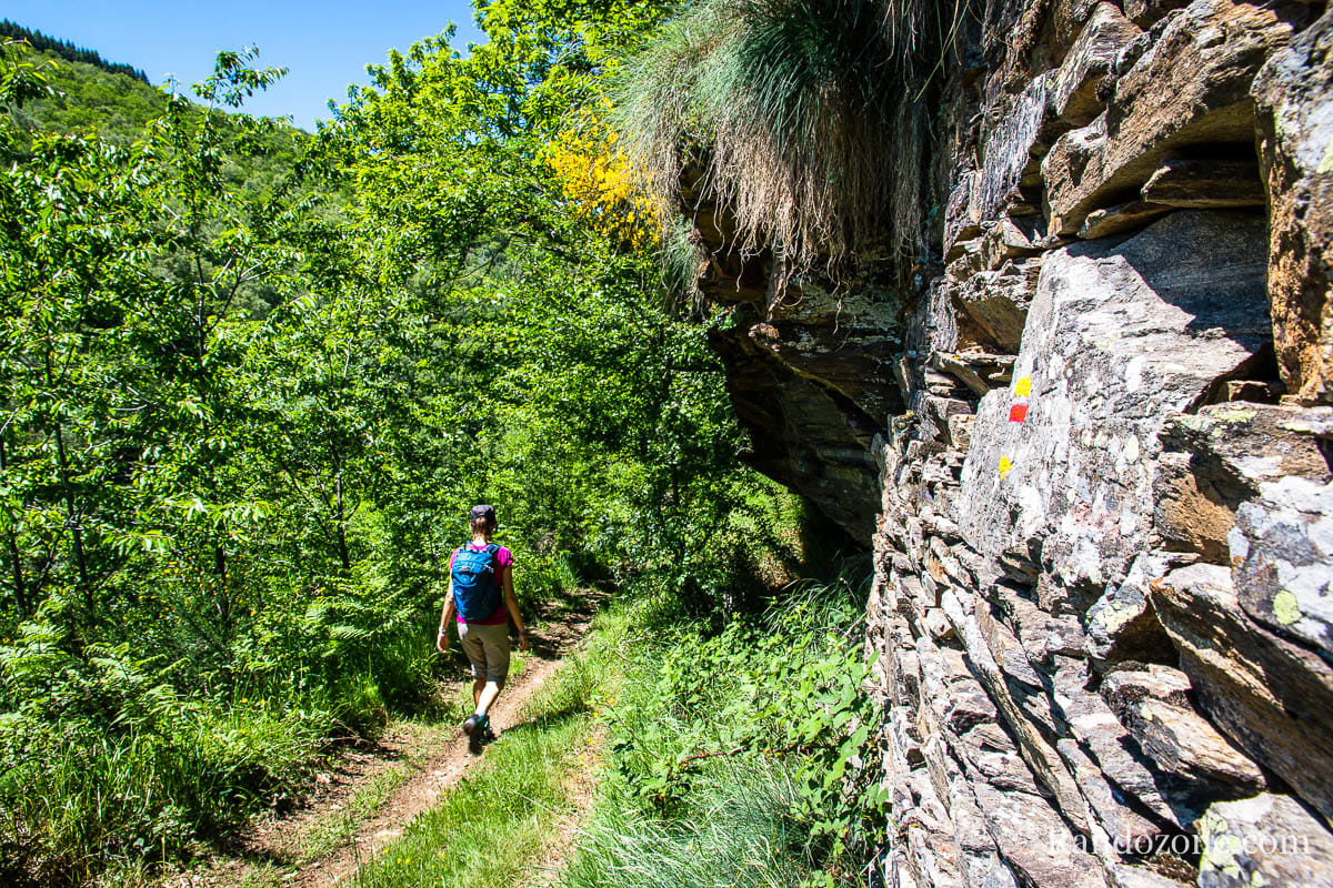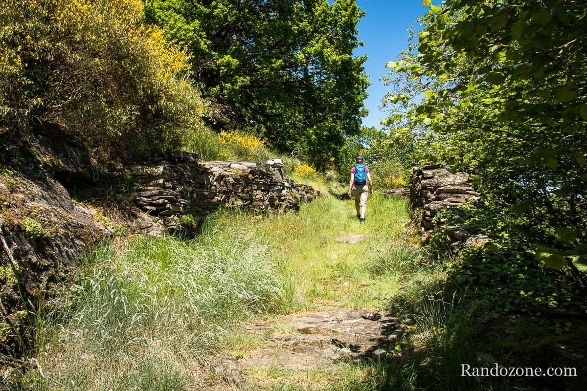 Puis poursuivre sur le chemin ombragé qui monte parmi les cailloux. Poursuivre jusqu'à arriver à l’ancienne ferme de La Fargue. La vue sur le château de Valon et les gorges de la Truyère est ici grandiose.
