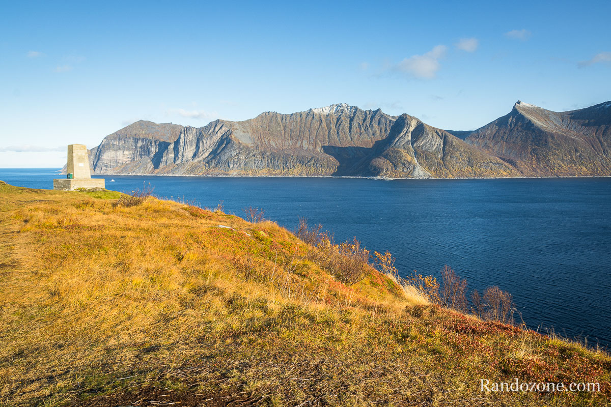 Au sommet se trouve un monument en mémoire des pêcheurs qui ont perdu leur vie en mer. La vue sur le Mefjorden est imprenable d’ici. On peut aussi apprécier la beauté du village de Mefjordvaer, blotti entre les montagnes et le fjord.