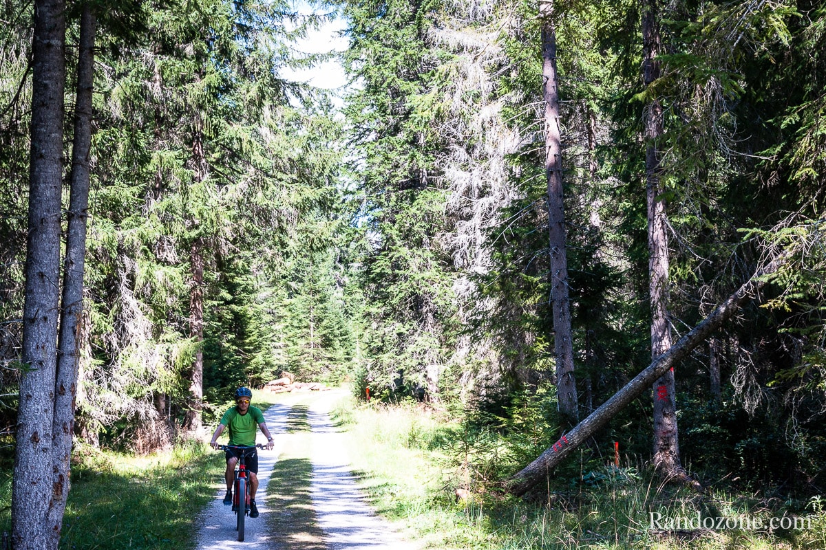 On roule sur une large piste qui pourrait être empruntée par des 4x4 mais on ne verra pas de véhicule à moteur (à part nos VTT électriques) et c’est très bien comme ça. On peut ainsi profiter du paysage et de la nature.