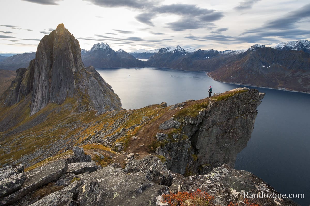 La montée puis la descente sont à faire avec de grandes précautions car ça glisse pas mal. Nous atteignons ensuite rapidement le bord de la falaise. Le point de vue sur la montagne Segla est ici parfait. Je reconnais d'ailleurs des angles de photos vues sur Instagram.