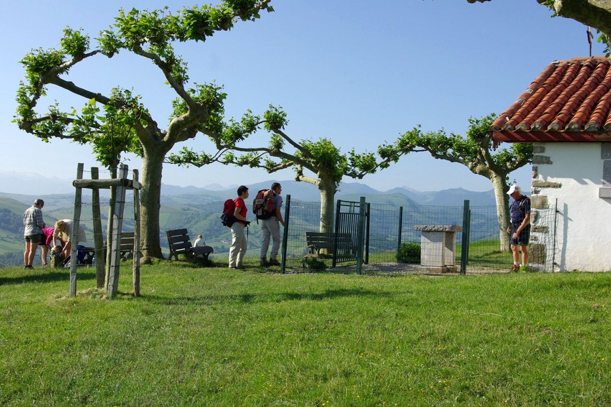 Le parcours s'ouvre sur des paysages typiques du Pays Basque intérieur, alternant entre chemins forestiers, prairies et cultures dispersées. Dès Jaurriberria, le marcheur suit des chemins terreux et pistes caillouteuses qui serpentent au milieu des champs, offrant des panoramas sur les Pyrénées tout proches.