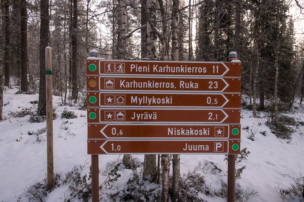 Considéré comme l'itinéraire de randonnée le plus populaire de Finlande, le Pieni Karhunkierros, ou « Petite boucle de l'ours », est réputé pour être une véritable miniature du parc national d'Oulanka. Si la semi-boucle complète s'étend sur environ 12 kilomètres, l'itinéraire choisi pour cette journée s'est concentré sur un format en aller-retour, permettant une exploration rapide des paysages caractéristiques de la région sans s'engager dans la totalité du parcours.