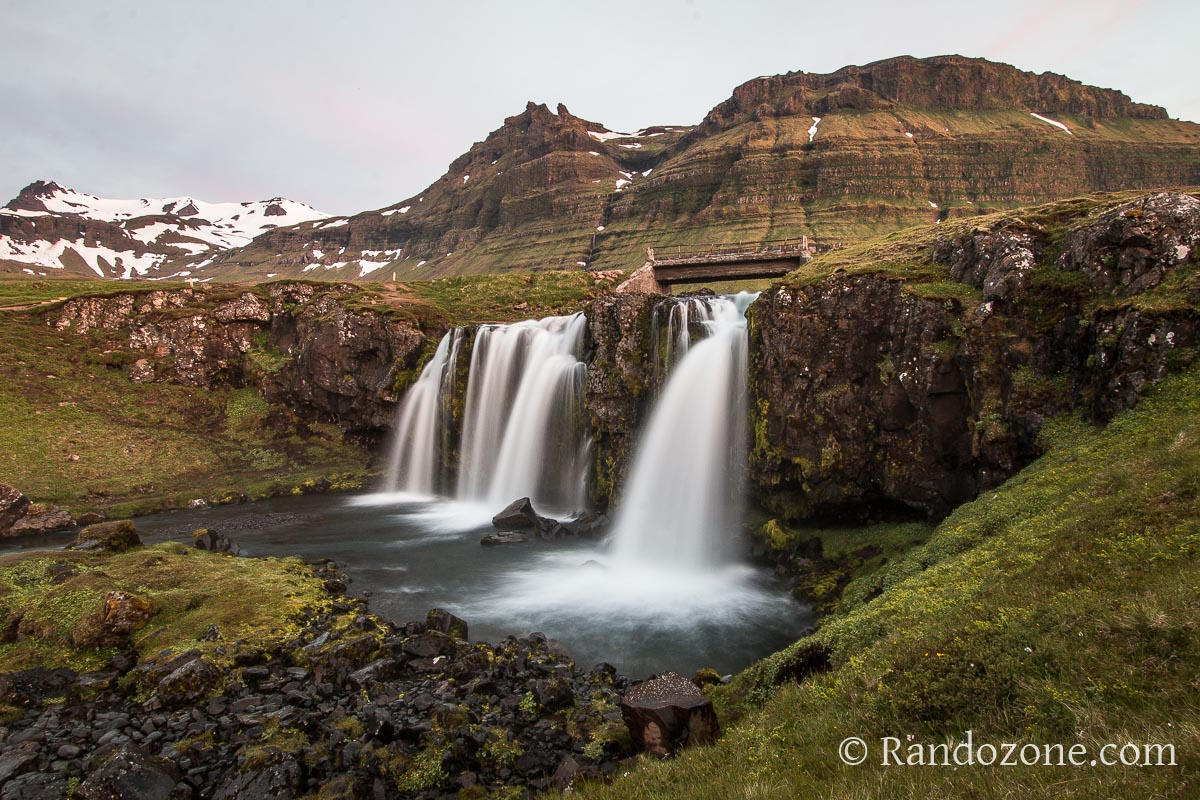 A côté de Kirkjufell, on peut aussi aller voir la cascade de Kirkjufellsfoss qui pourra donner de très belles photos avec Kirkjufell en arrière plan. En juin, avec le jour sans fin, il est possible de venir faire des photos à 3 heures du matin et profiter du calme de l'endroit avec le soleil à l'horizon. C'est magique et inoubiable.